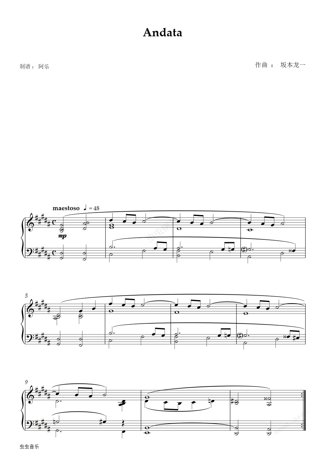 您的位置: 首頁 > 鋼琴譜庫 > 坂本龍一 - Andata