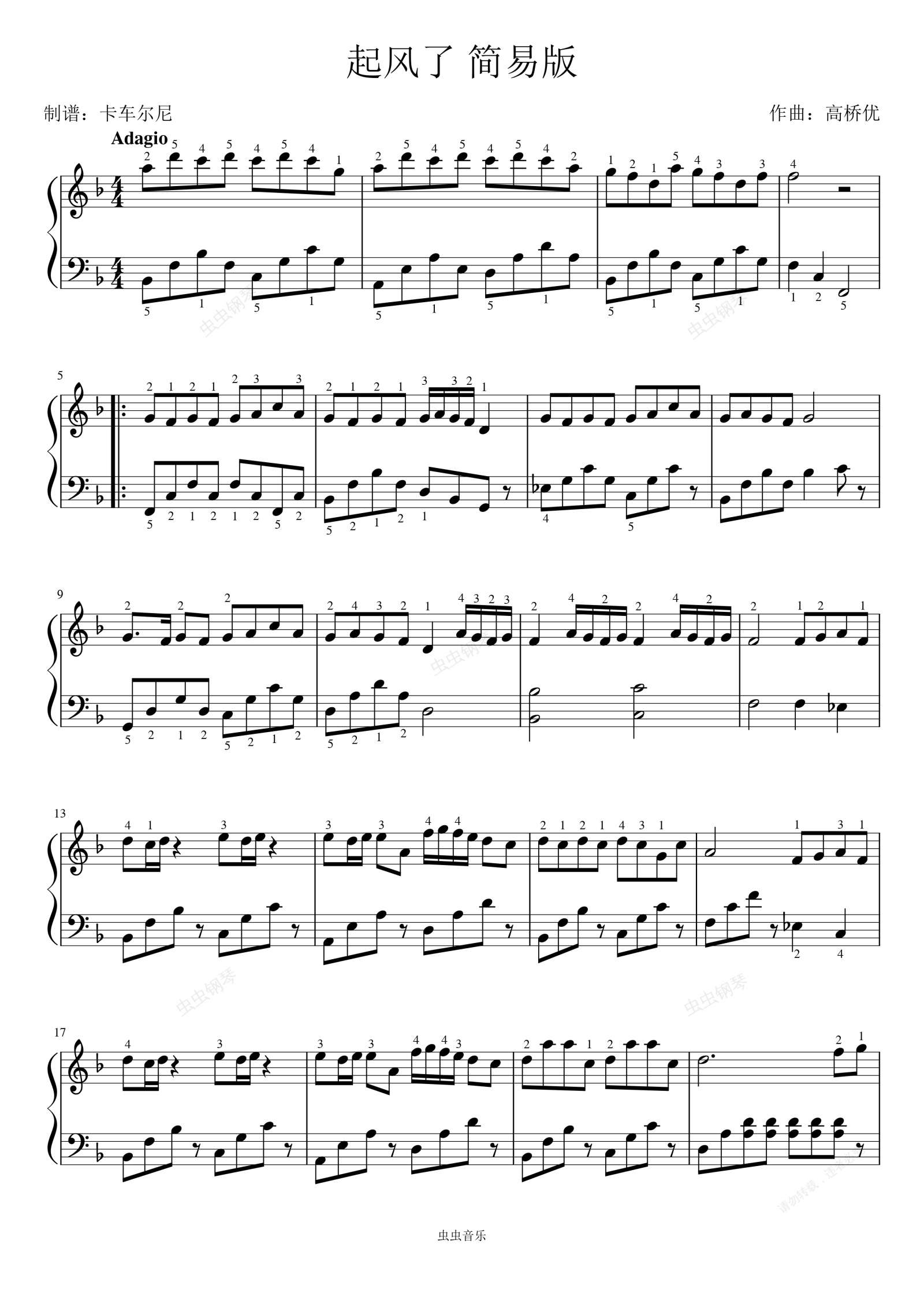 鋼琴譜:《起風(fēng)了》 車(chē)?yán)蠋熀?jiǎn)易優(yōu)化版【帶指法】