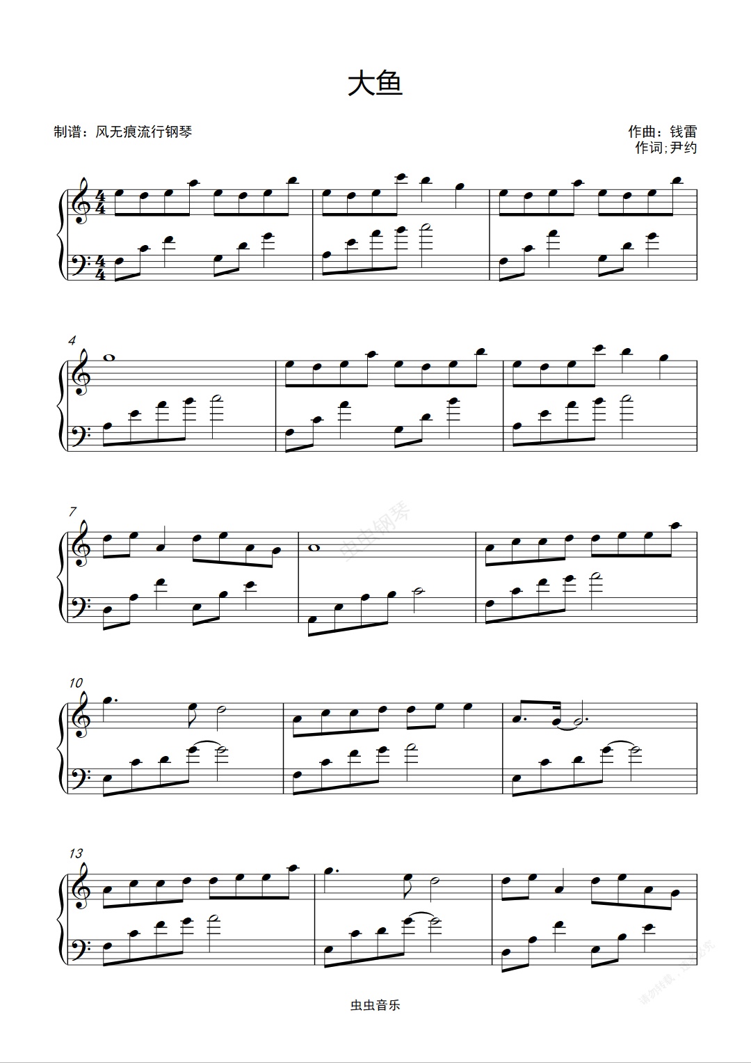 鋼琴譜:大魚-周深〖簡易動聽〗