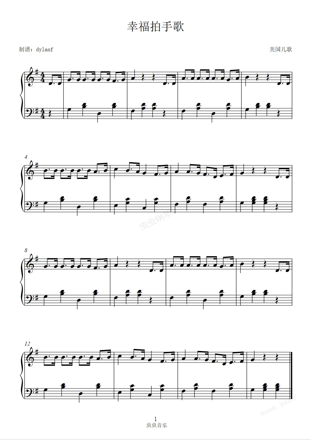鋼琴譜:幸福拍手歌 經典兒歌 琴童專用