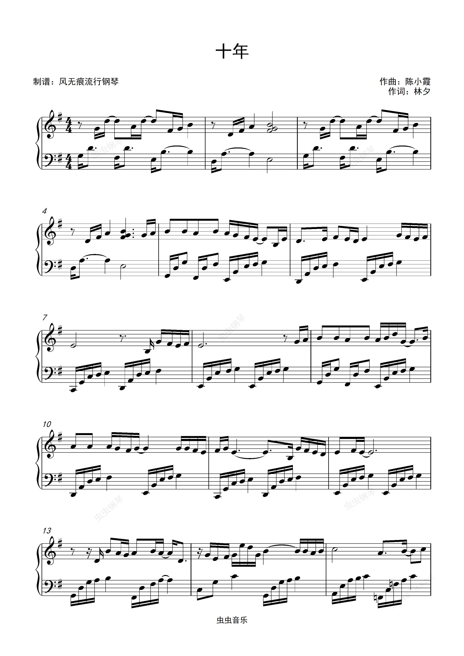 鋼琴譜:十年-陳奕迅〖簡易動聽〗