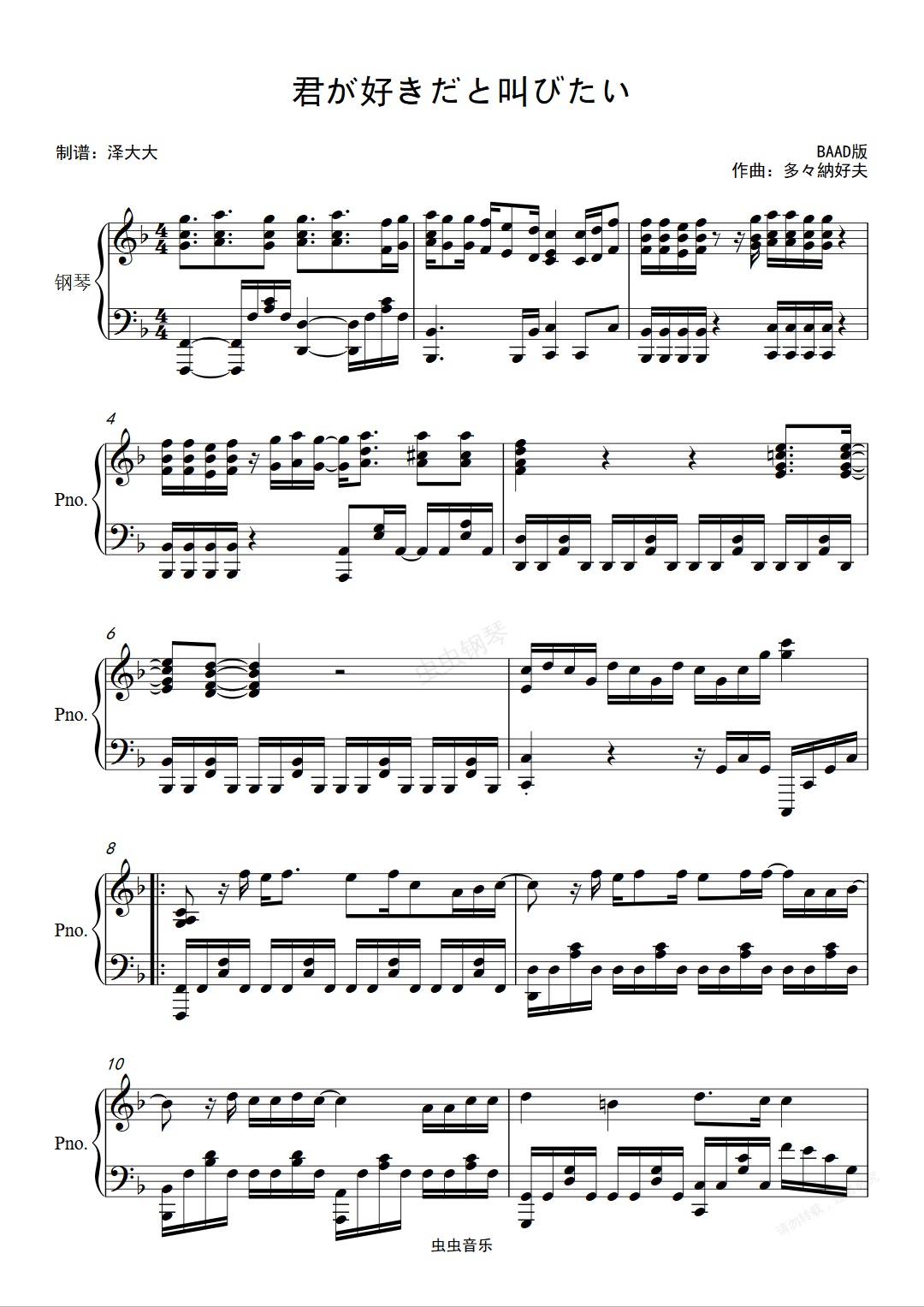 鋼琴譜:君が好きだと叫びたい【灌籃高手鋼琴獨奏版】