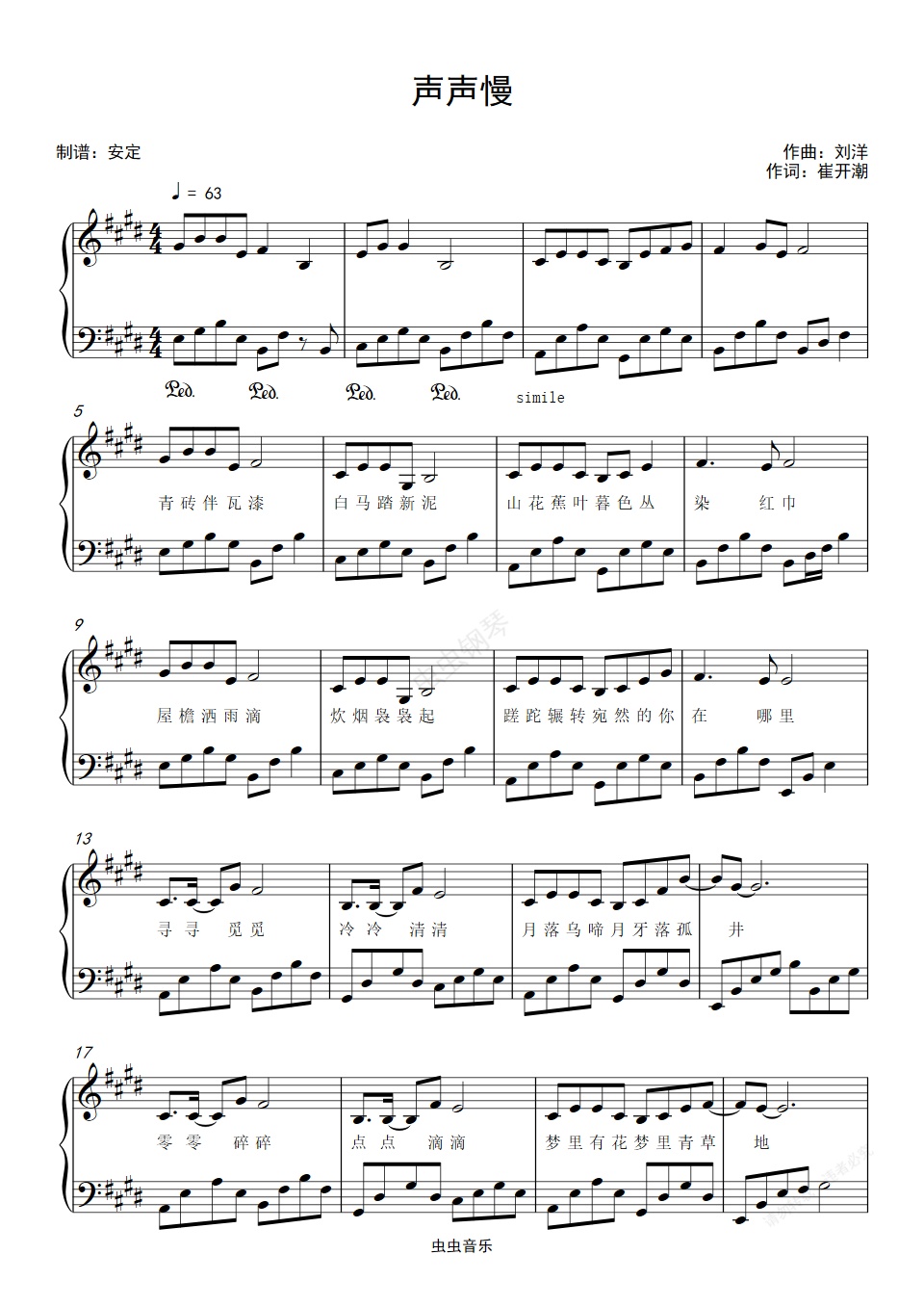 鋼琴譜:聲聲慢-崔開潮E調(diào)