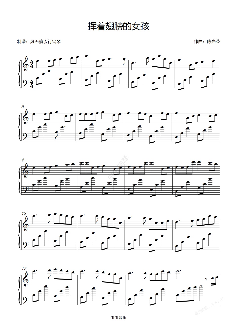 鋼琴譜:揮著翅膀的女孩-容祖兒〖簡易動聽〗