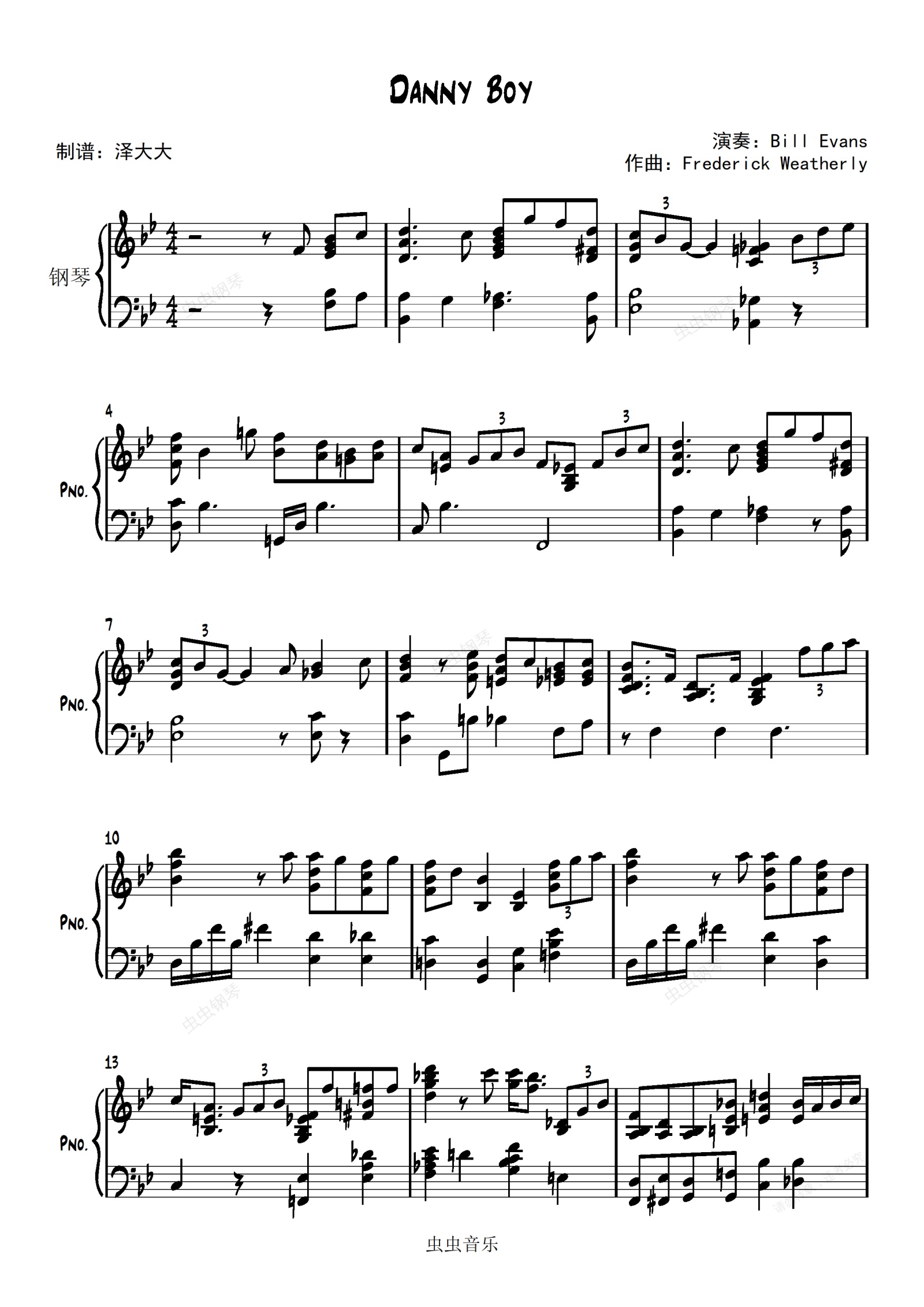 鋼琴譜:Danny Boy【爵士鋼琴獨奏】