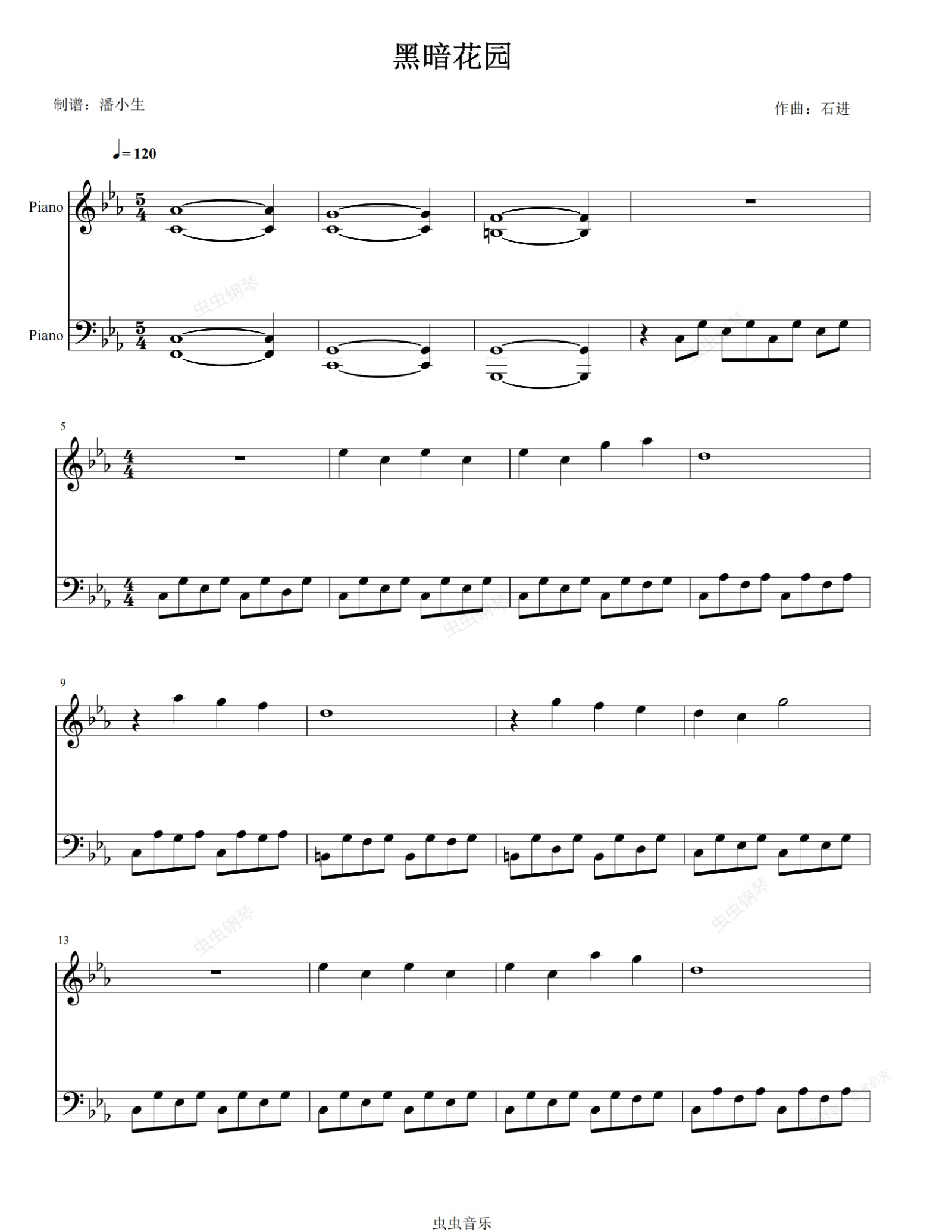 鋼琴譜:黑暗花園 原調 石進 《夜的鋼琴曲Ⅴ》鋼琴譜 五線譜