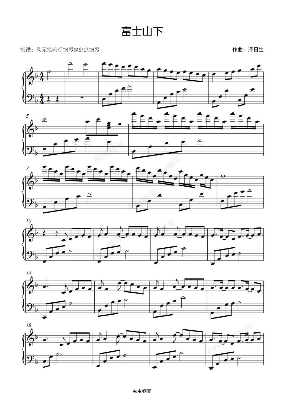 鋼琴譜:富士山下-陳奕迅〖簡易動聽〗