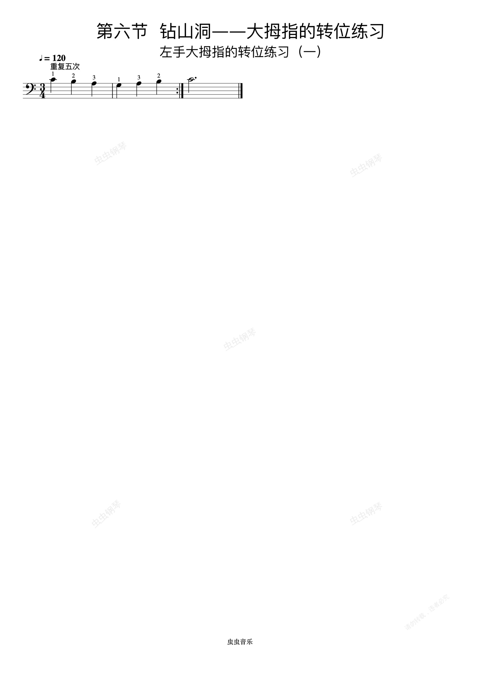 鋼琴譜:左手大拇指的轉位練習(一)-2《手指訓練操》