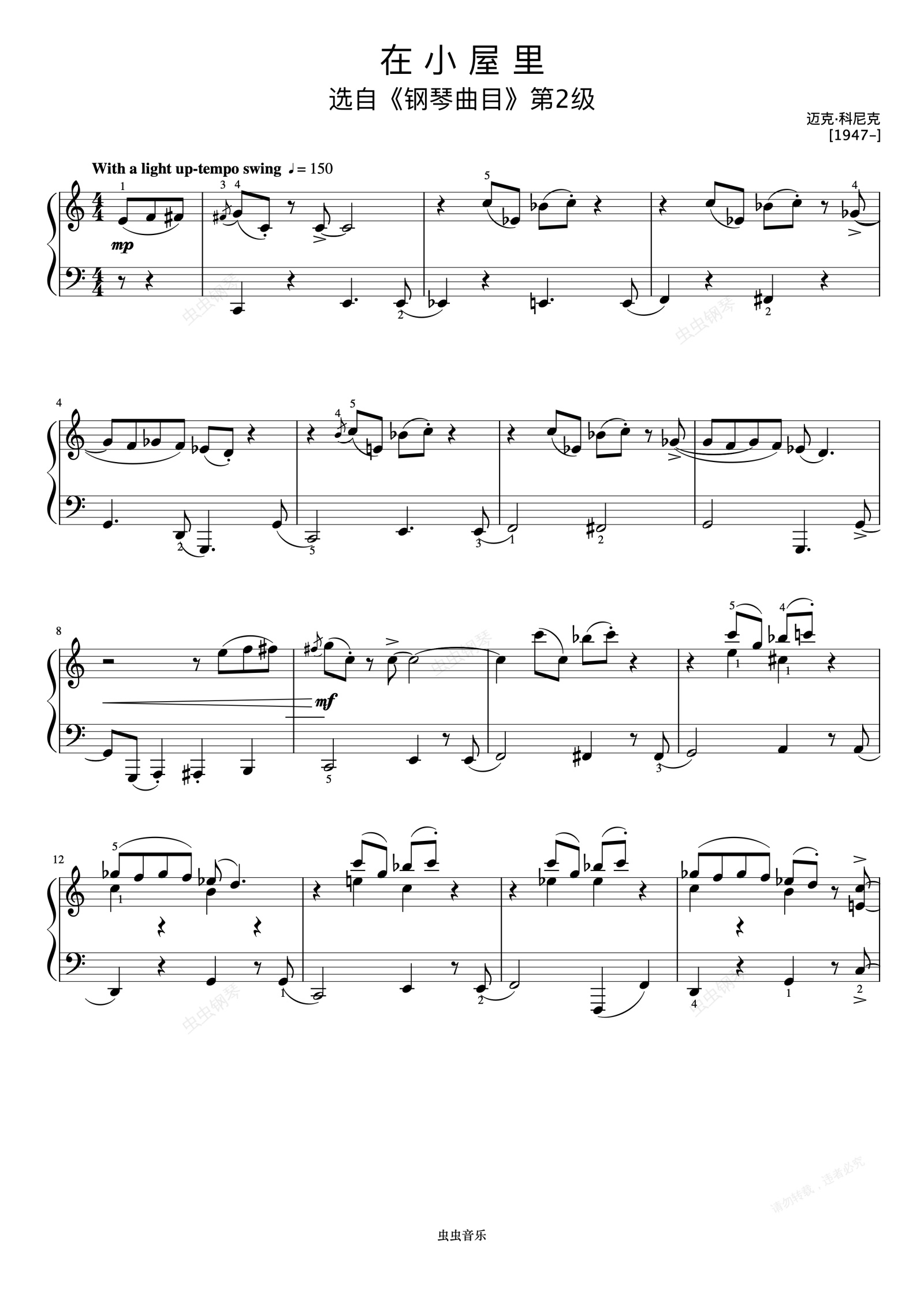 鋼琴譜:4級 在小屋里《英皇鋼琴考級曲目(2015-2016)》