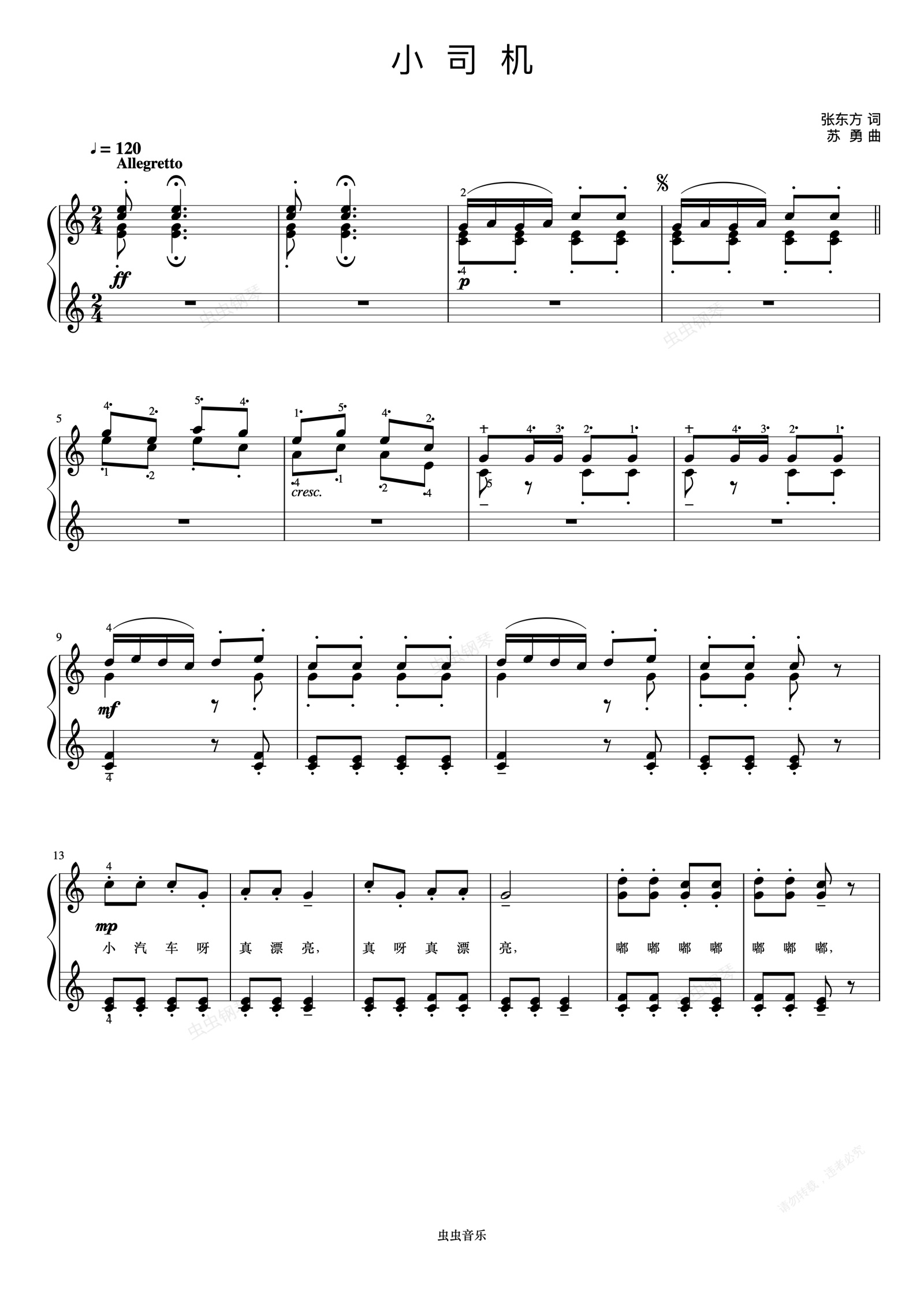 鋼琴譜:小司機《彈兒歌學鋼琴》