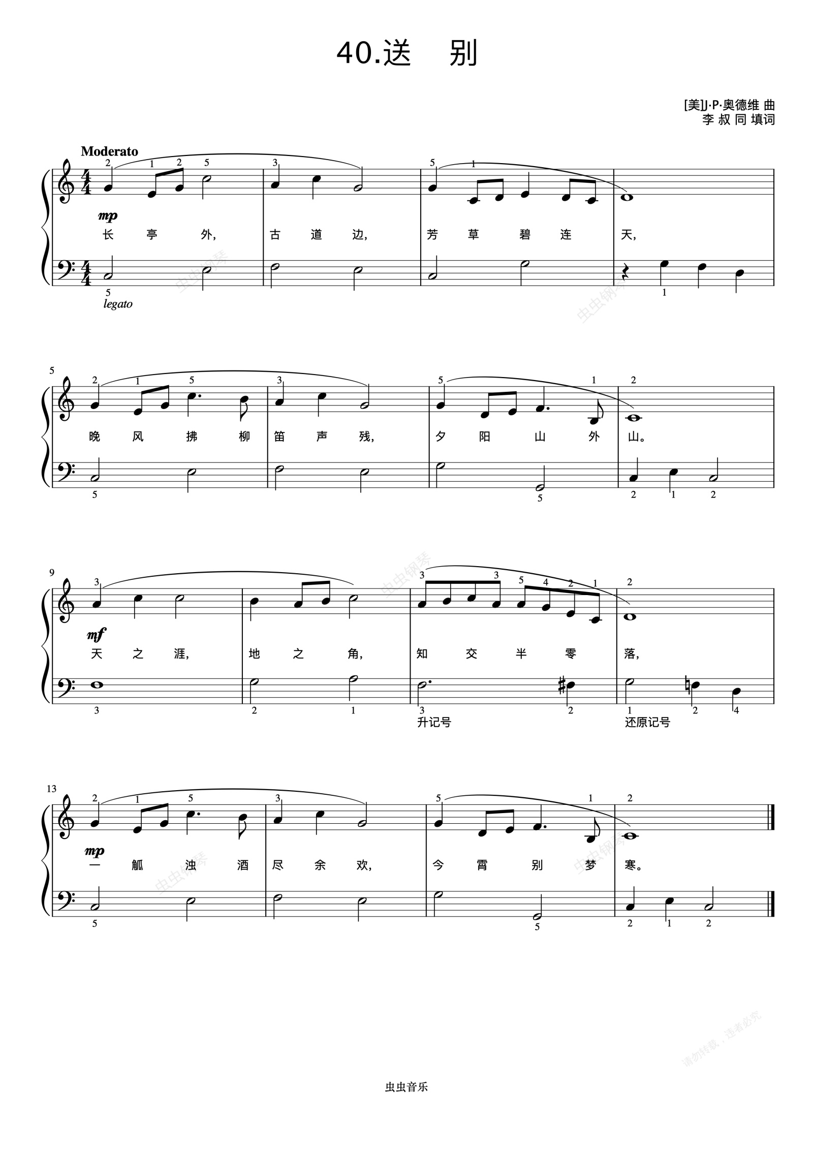 鋼琴譜:送別《彈兒歌學鋼琴》
