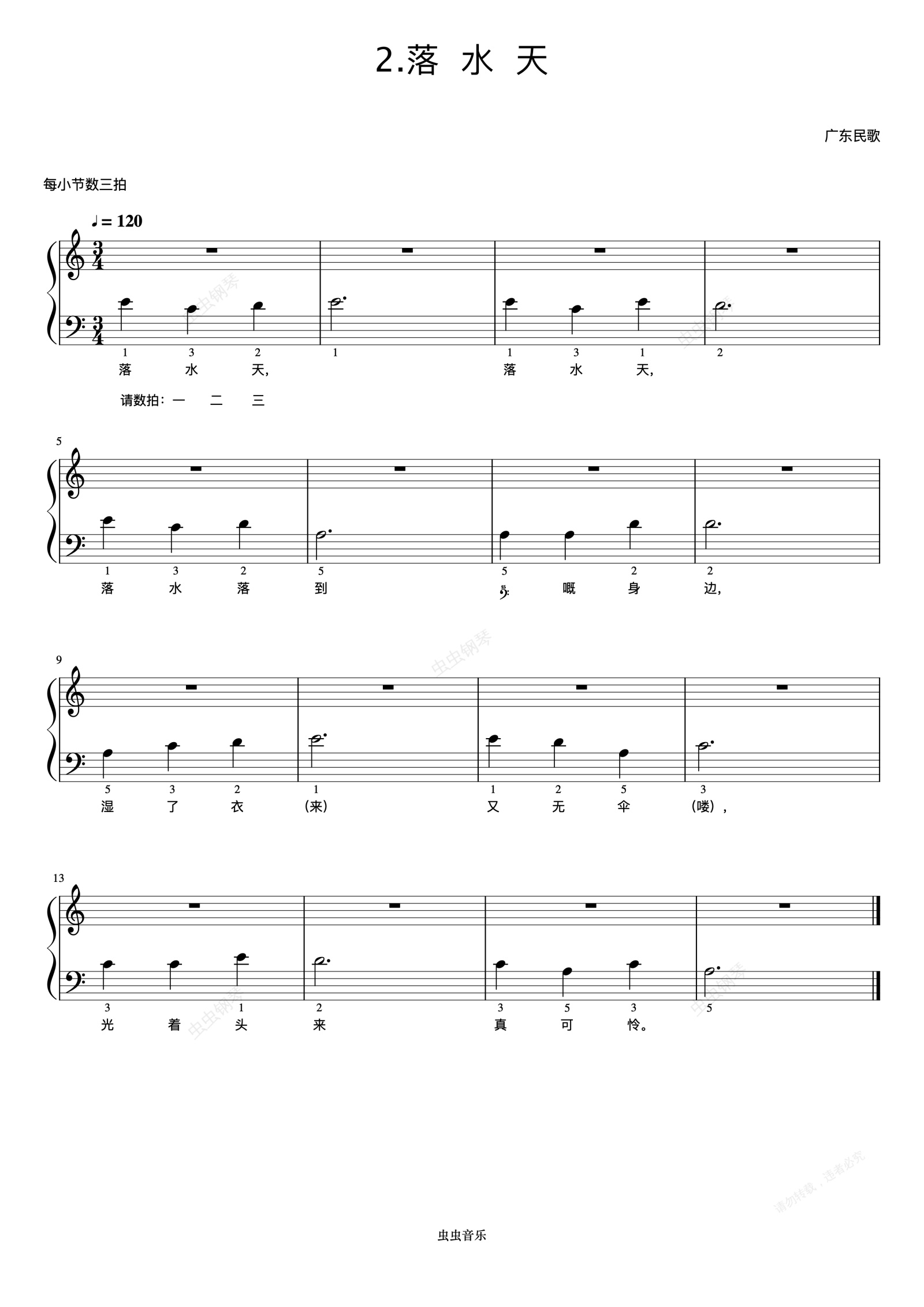 鋼琴譜:落水天《彈兒歌學鋼琴》