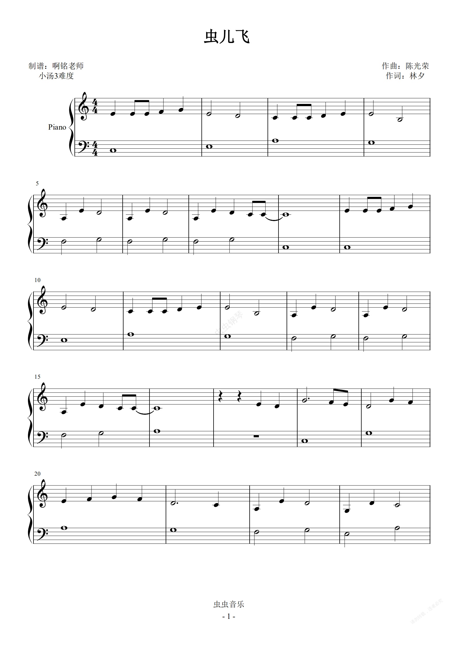 鋼琴譜:蟲(chóng)兒飛 小湯3 難度