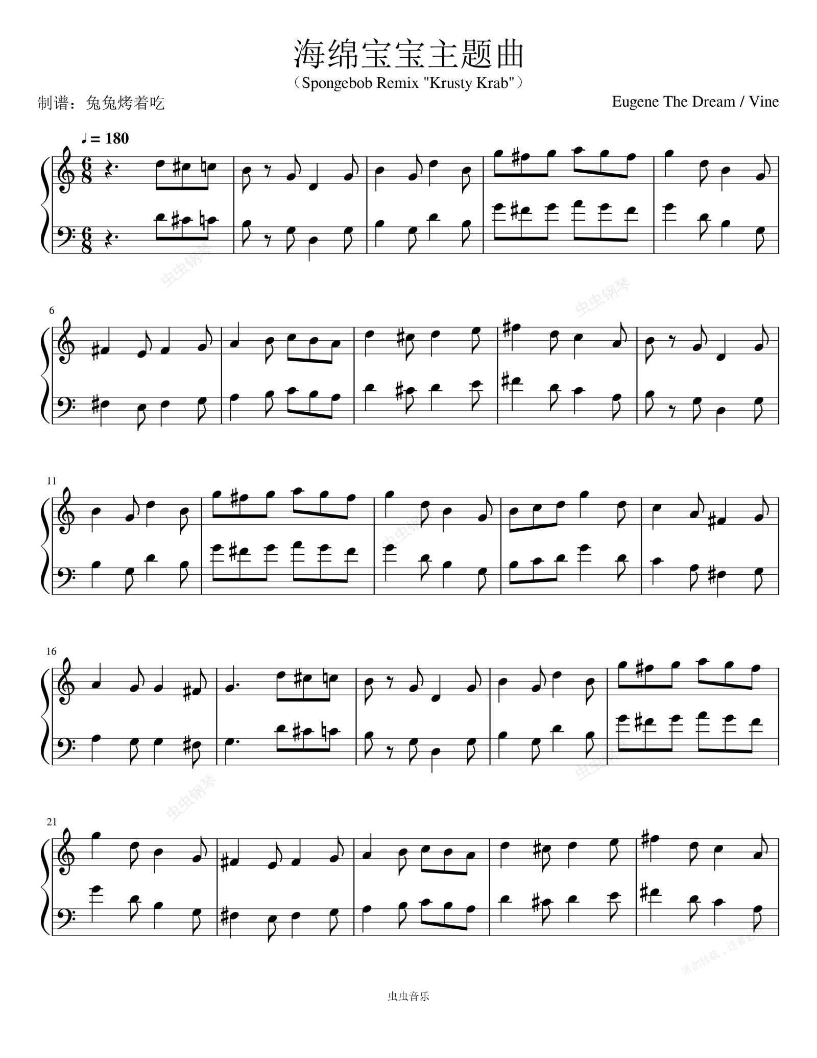 鋼琴譜:海綿寶寶主題曲 (沙雕出場)