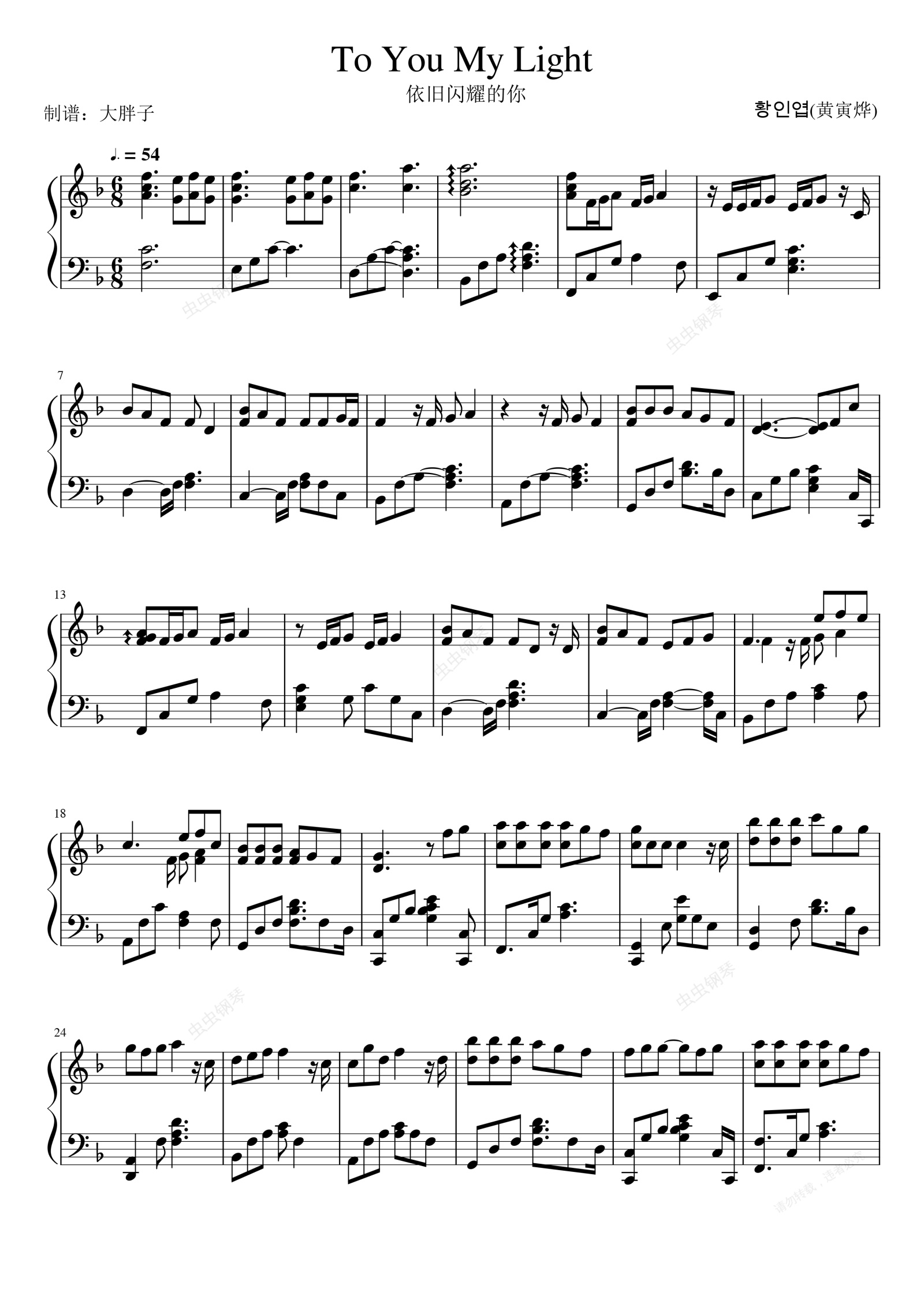 鋼琴譜:《To You My Light》黃寅燁(依舊閃耀的你)韓劇女神降臨插曲