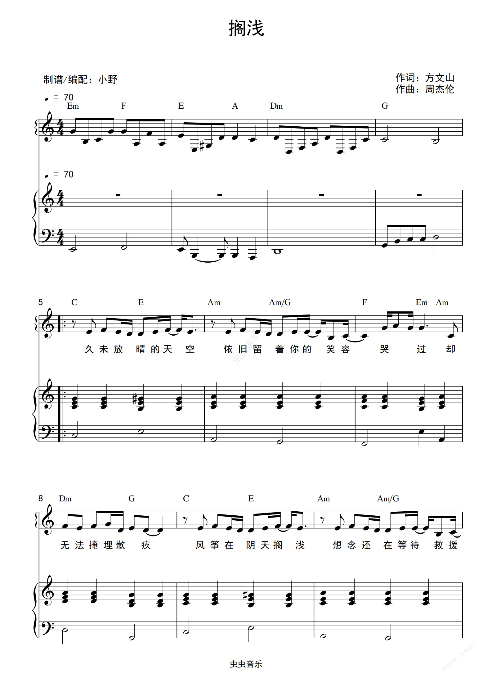 鋼琴譜:擱淺(和弦彈唱版)