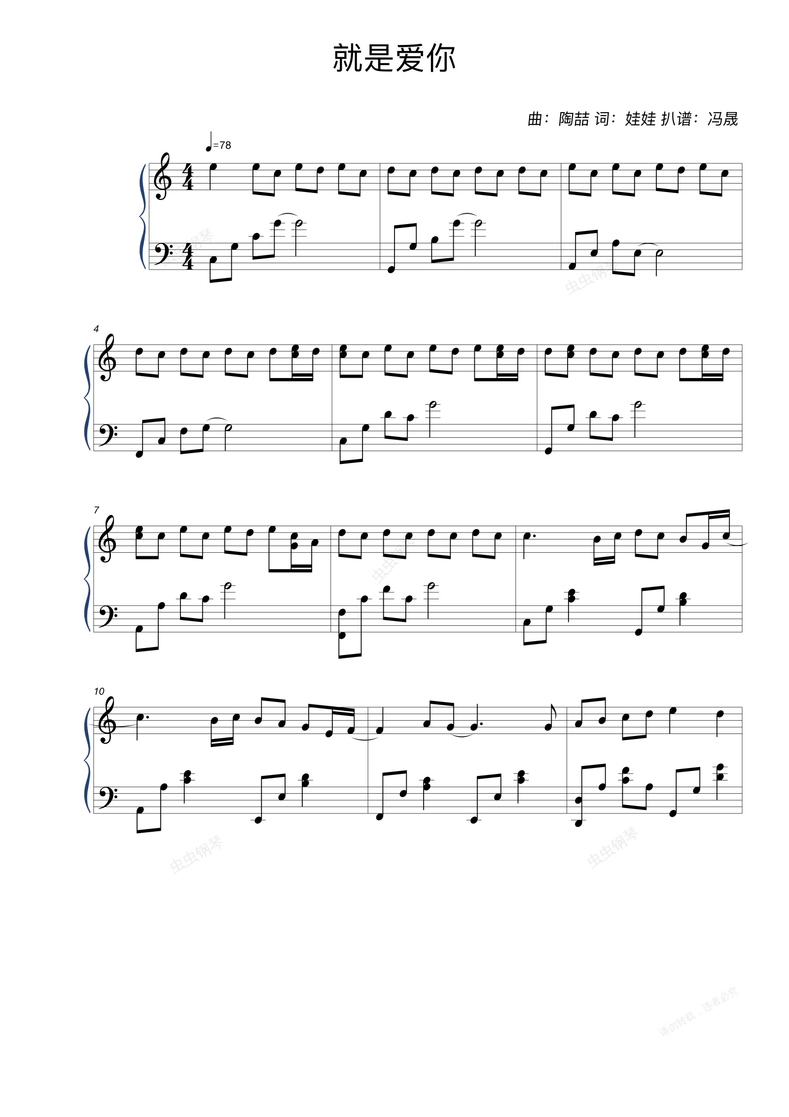 另外:1.樂曲第一段開始右手就存在雙聲部,為求簡便你可以僅彈其主旋律。出于尊重原曲,我將自己能聽到的內容都轉化為曲譜,但還有不足之處,還望諒解。