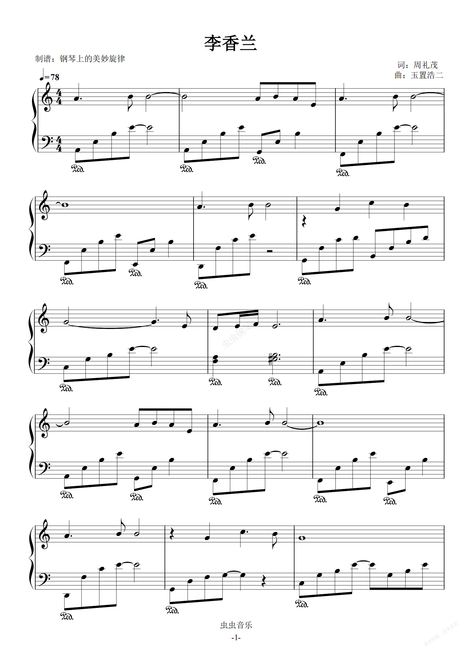 鋼琴譜:李香蘭(秋意濃)C調簡易版