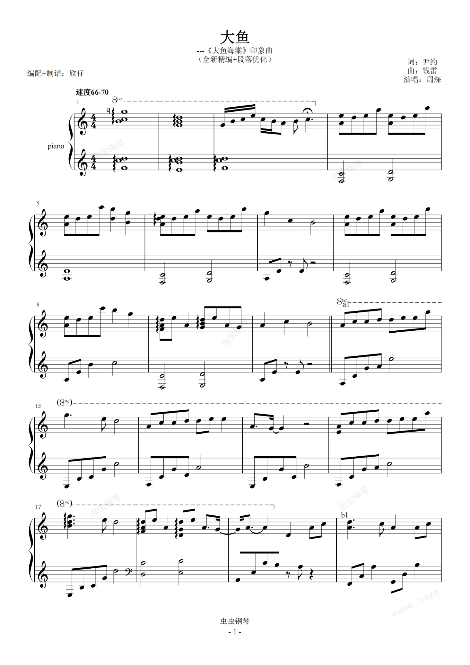 鋼琴譜:C調(性價比超高版)《大魚》(精編回憶版+段落優化)