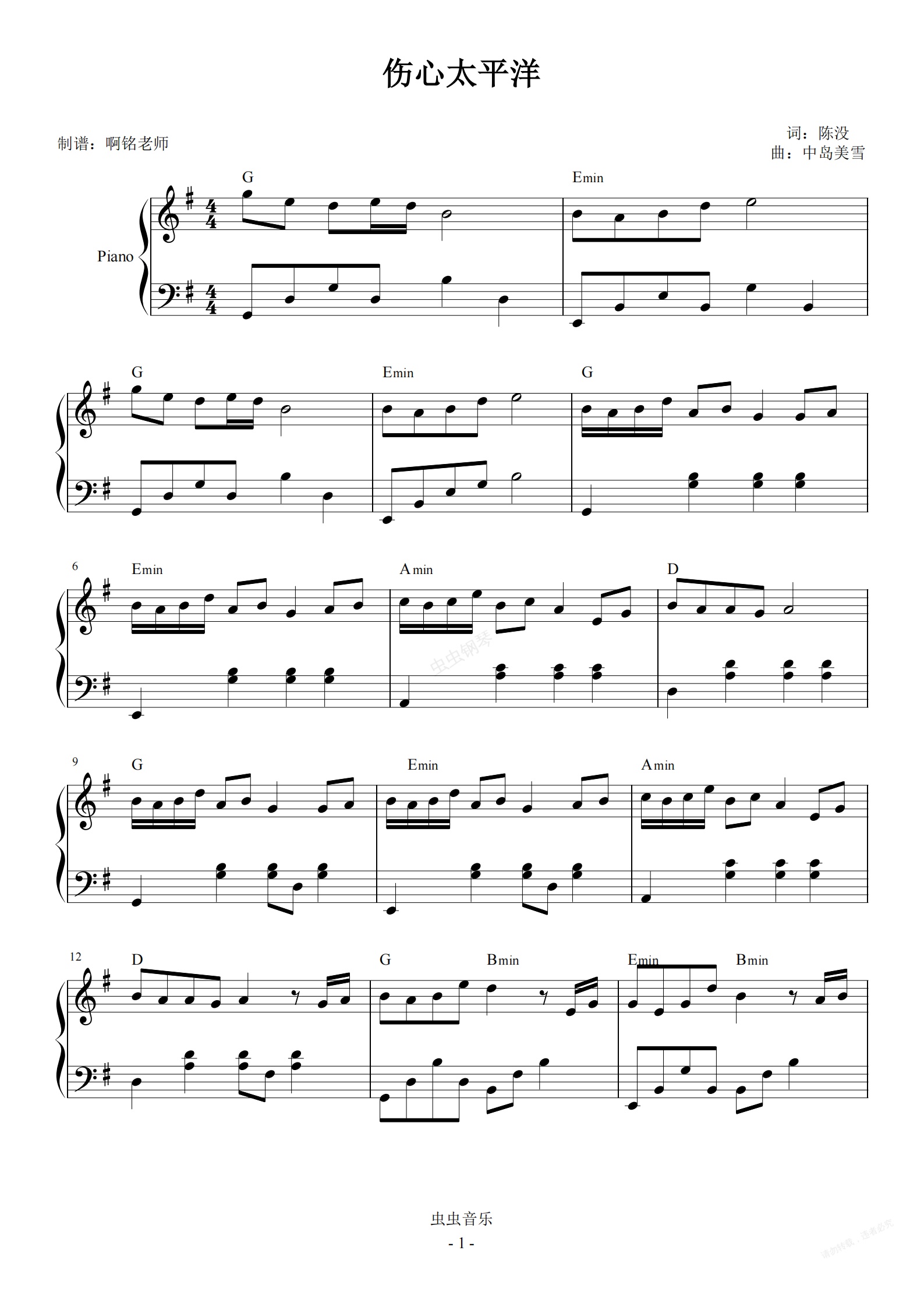 鋼琴譜:傷心太平洋【懷舊 簡易】
