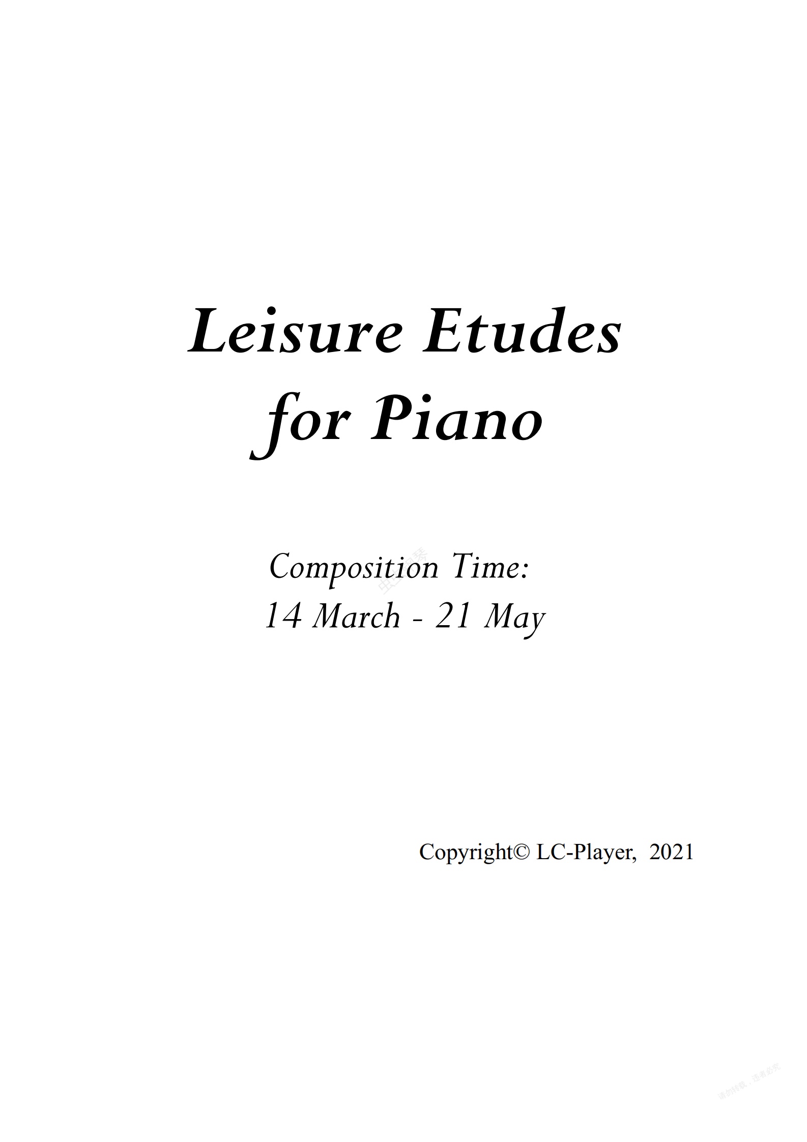 鋼琴譜:Leisure Etudes for Piano/鋼琴練習曲集“閑時”【原創鋼琴曲】