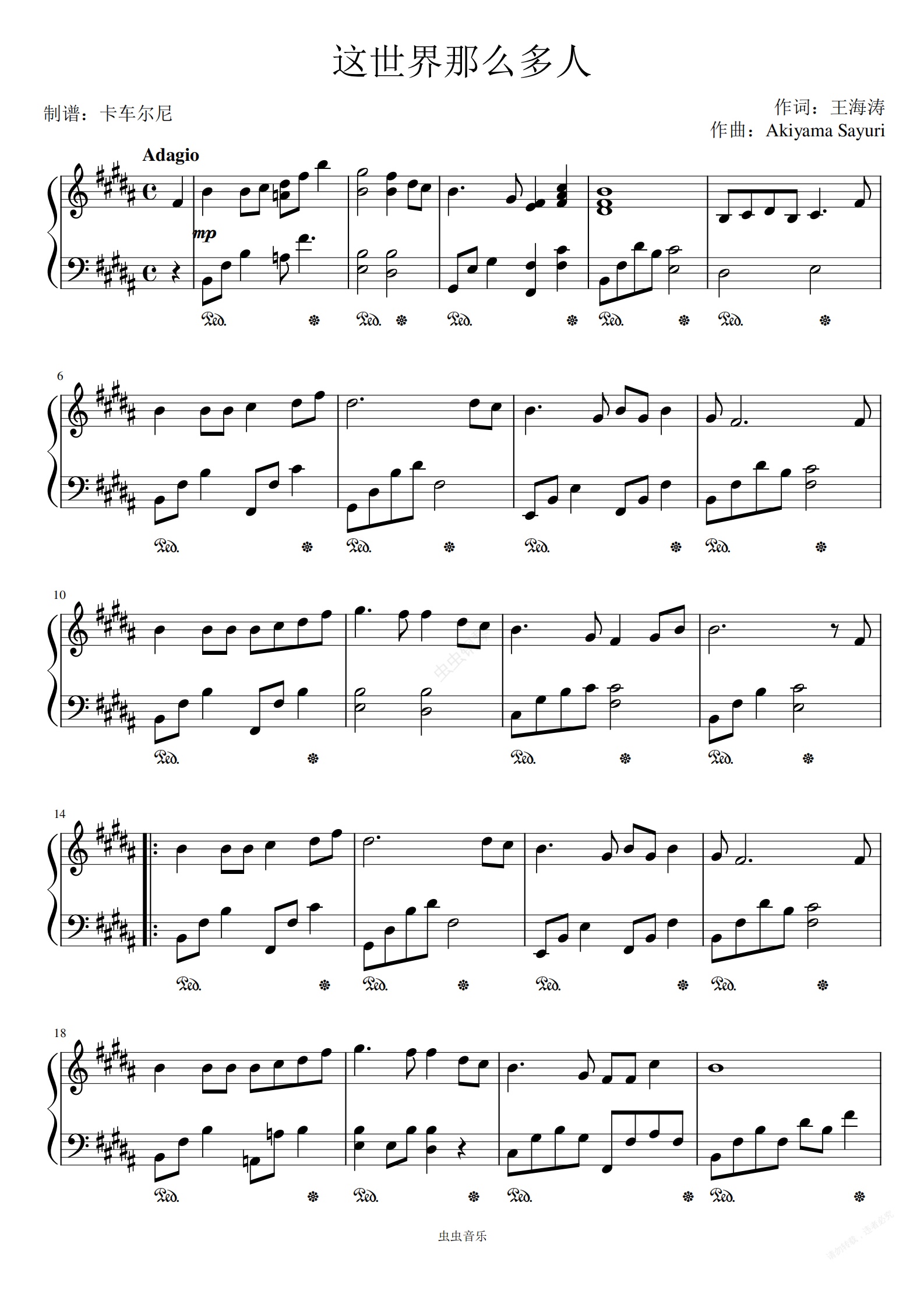 鋼琴譜:這世界那么多人 《我要我們在一起》主題曲 抒情演奏版