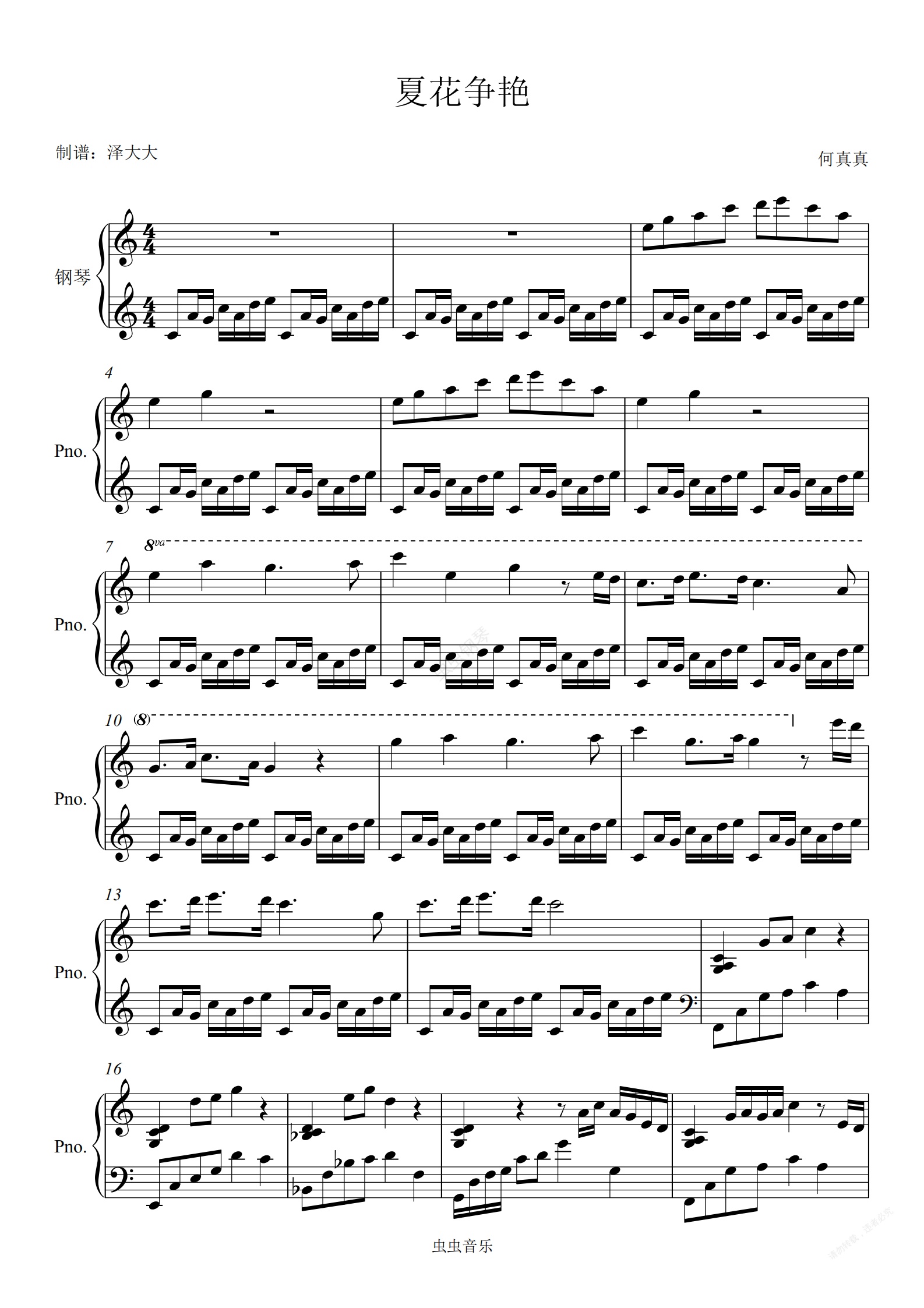 鋼琴譜:夏花爭艷【古風鋼琴版】澤大大