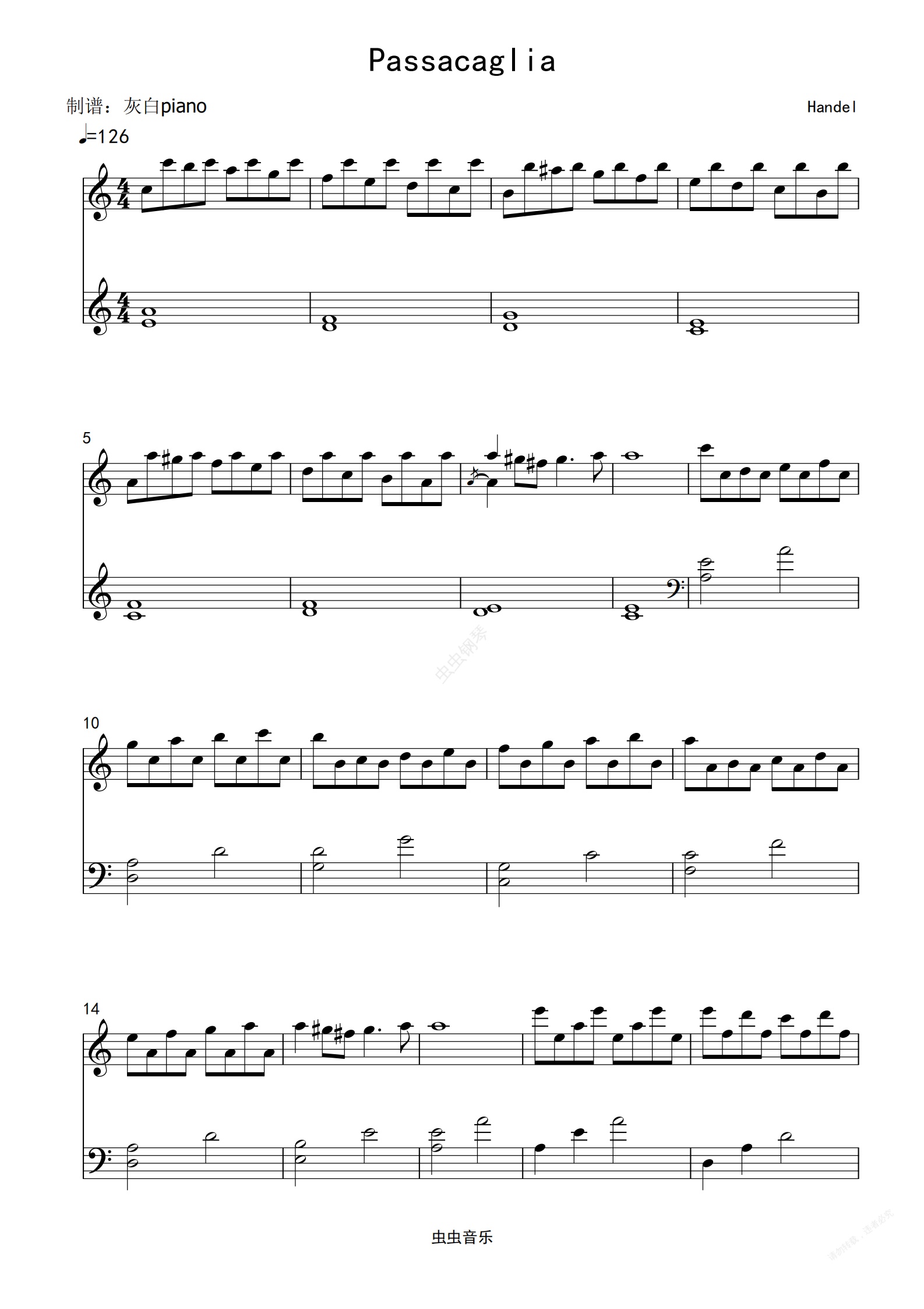 鋼琴譜:《帕薩卡利亞》- 灰白 演奏版