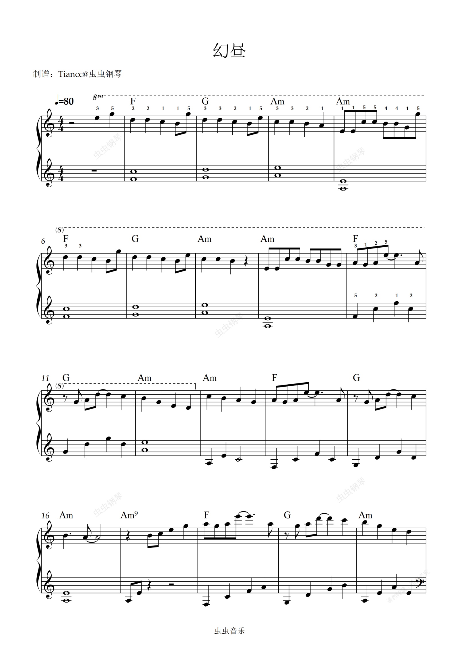 鋼琴譜:《幻晝》教學專用,小湯3拜厄難度,簡單又好聽