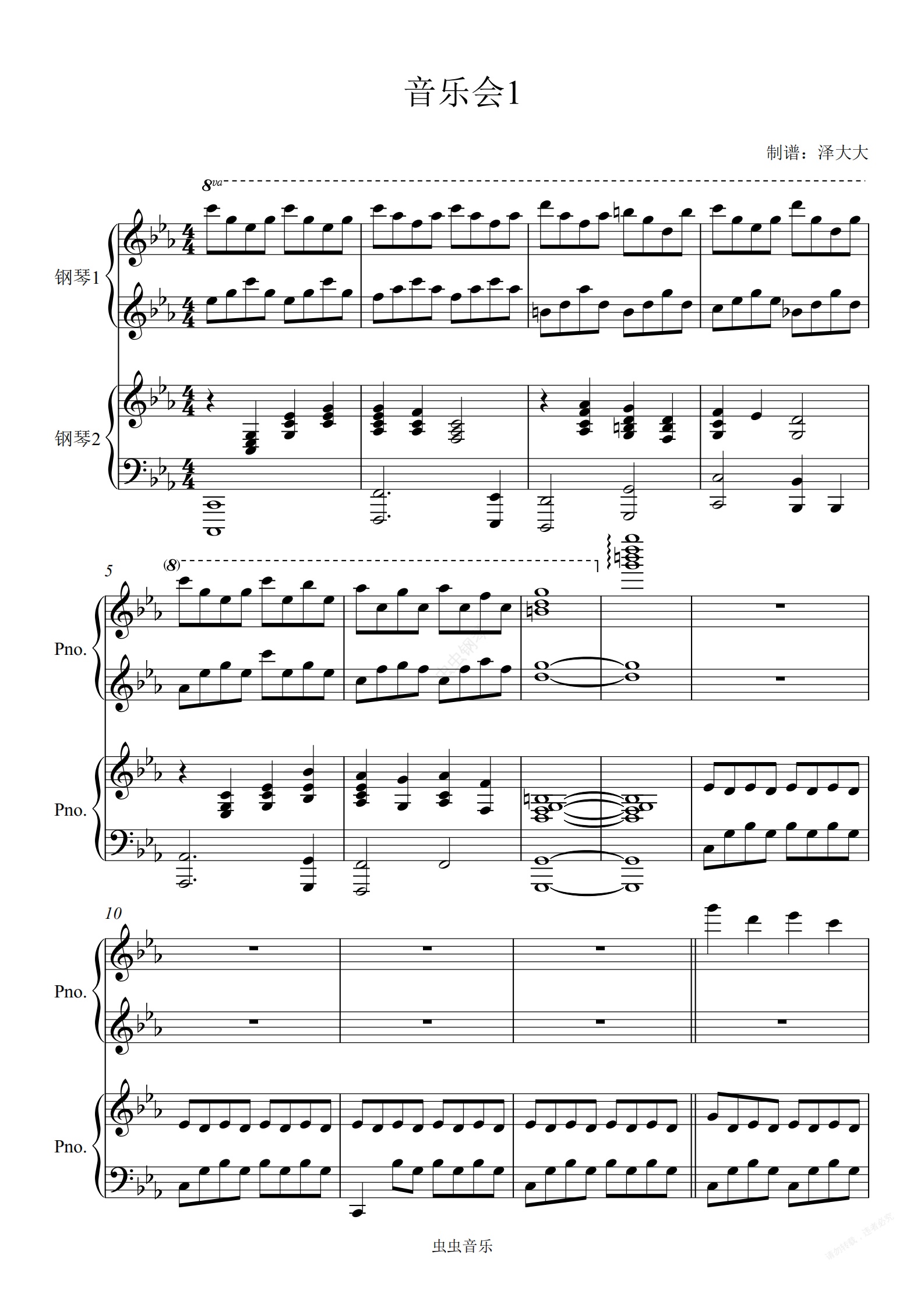 鋼琴譜:音樂會·一【四手聯彈】澤大大曲