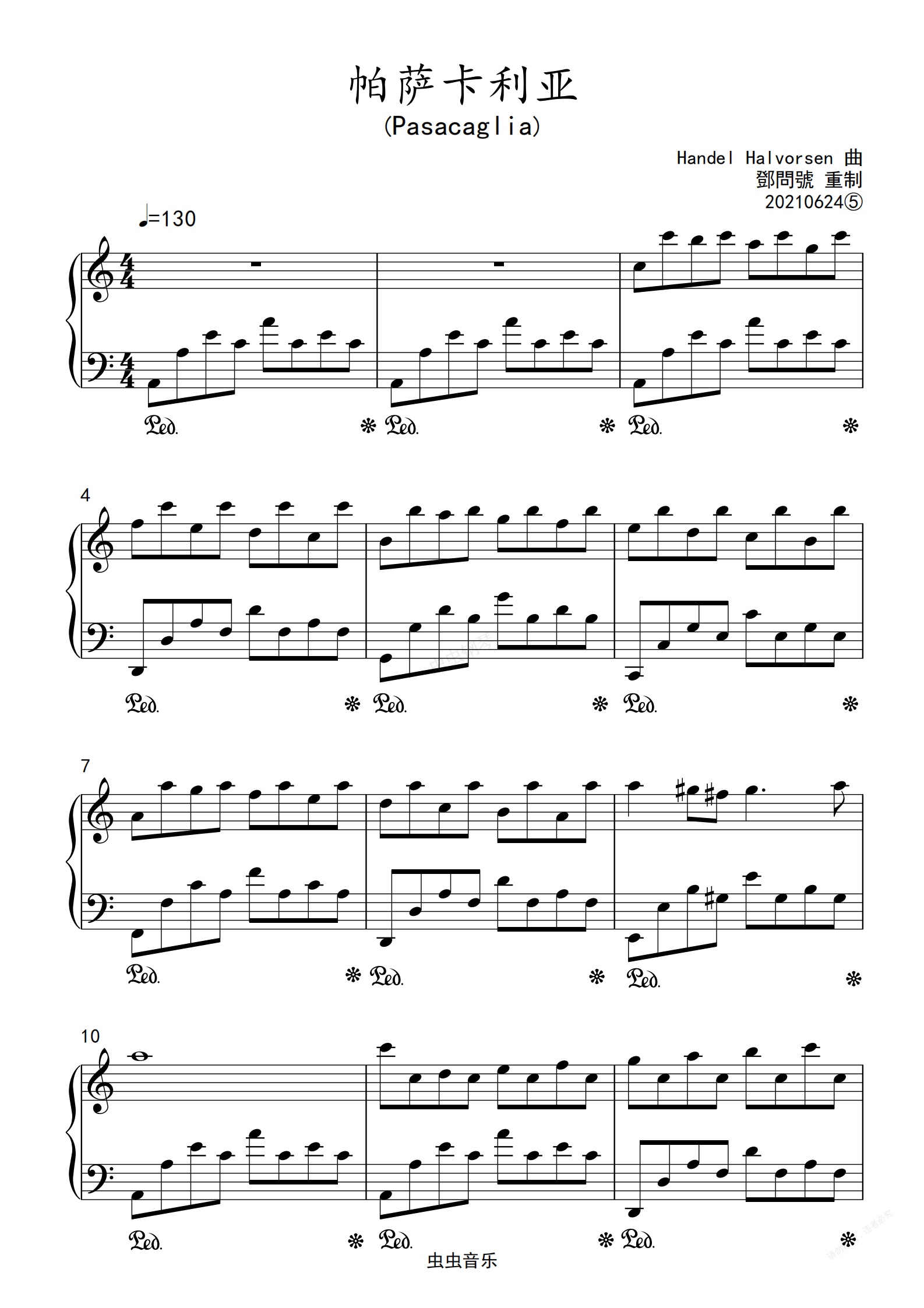 鋼琴譜:《帕薩卡利亞》(Pasacaglia)進階演奏版