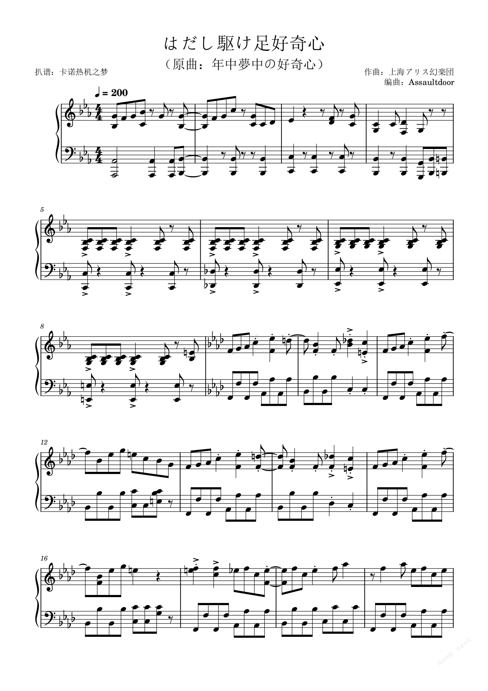 相當歡快鋼琴曲,扒譜難度也很大,演奏難度應該也不小。。