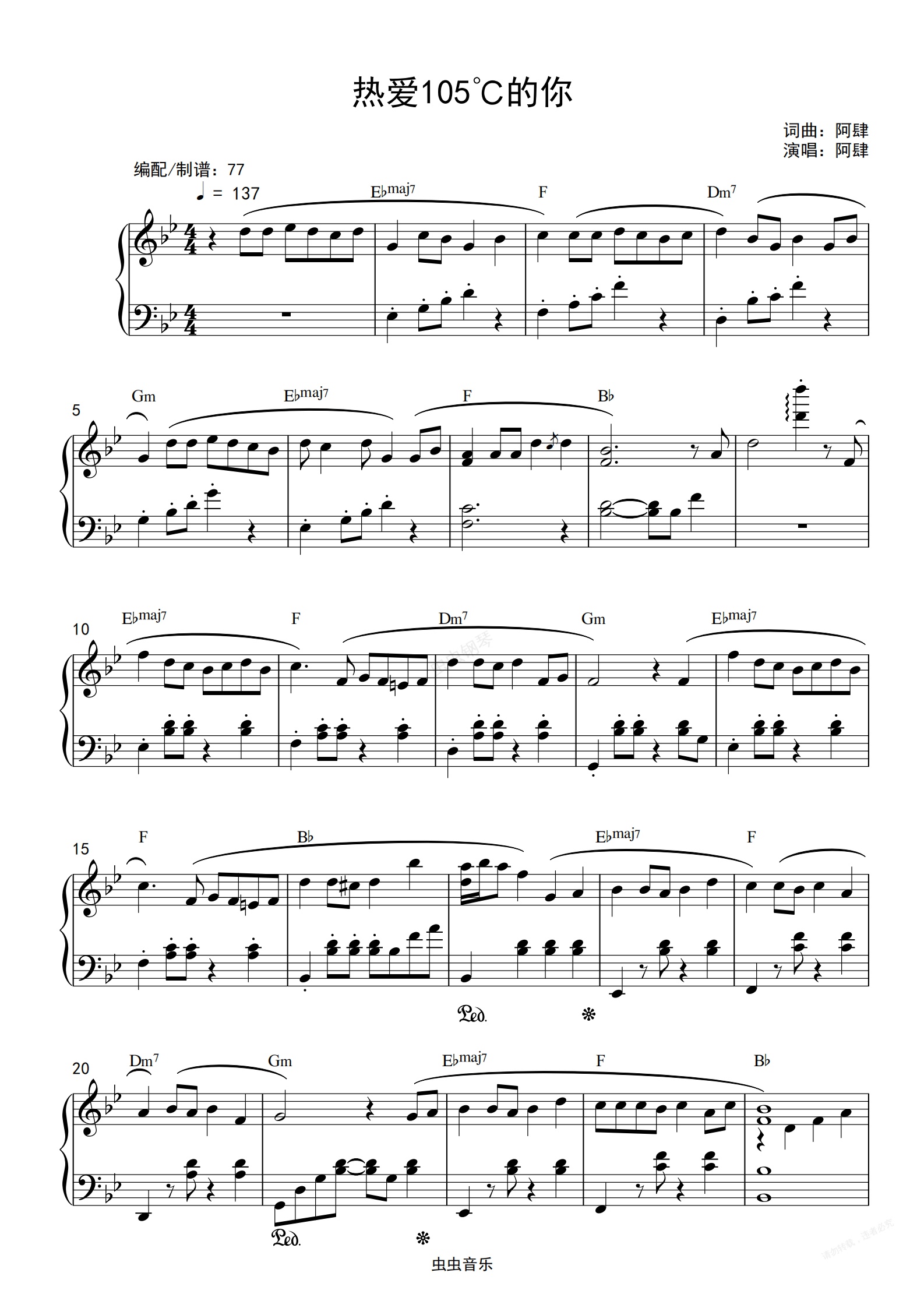 鋼琴譜:阿肆-《熱愛105℃的你》高度還原 鋼琴獨奏