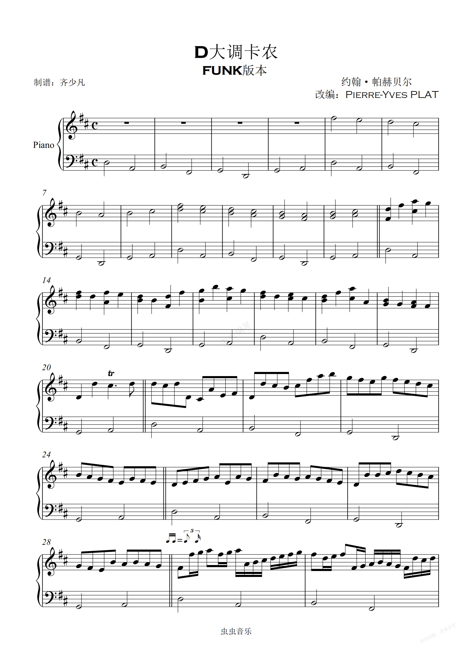 鋼琴譜:【FUNK版本】D大調(diào)卡農(nóng)