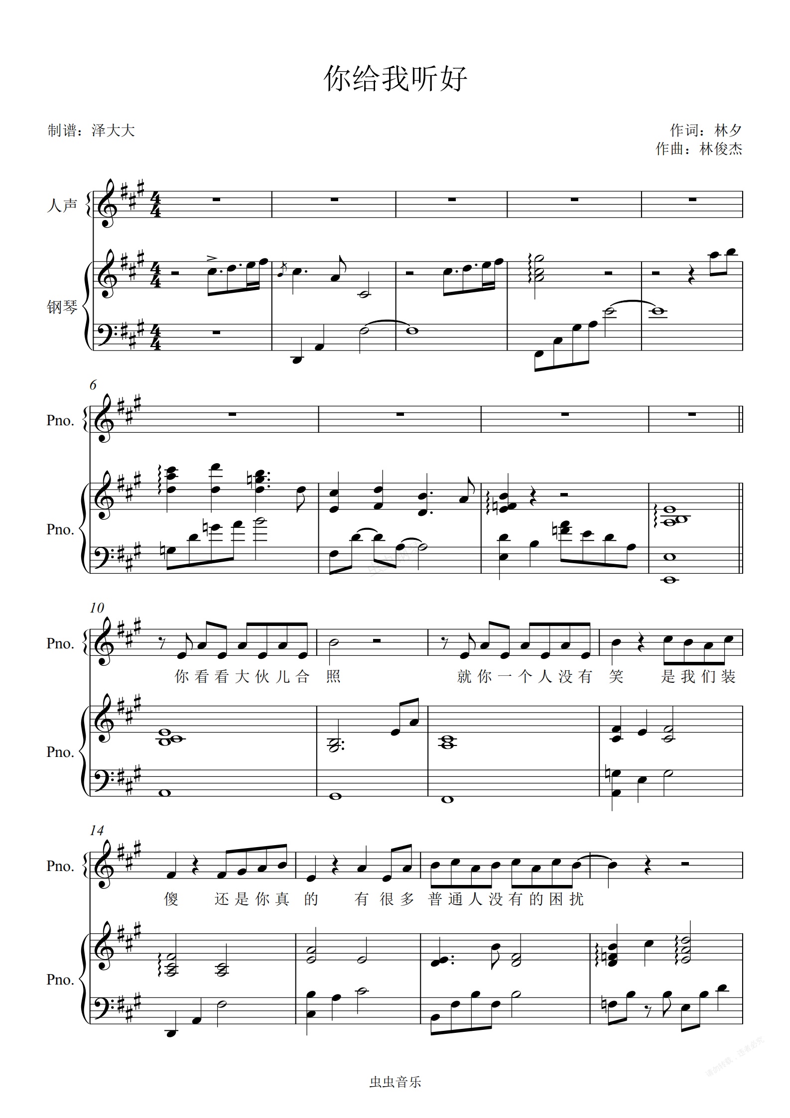 鋼琴譜:你給我聽好【女生A調彈唱附詞】澤大大 陳奕迅