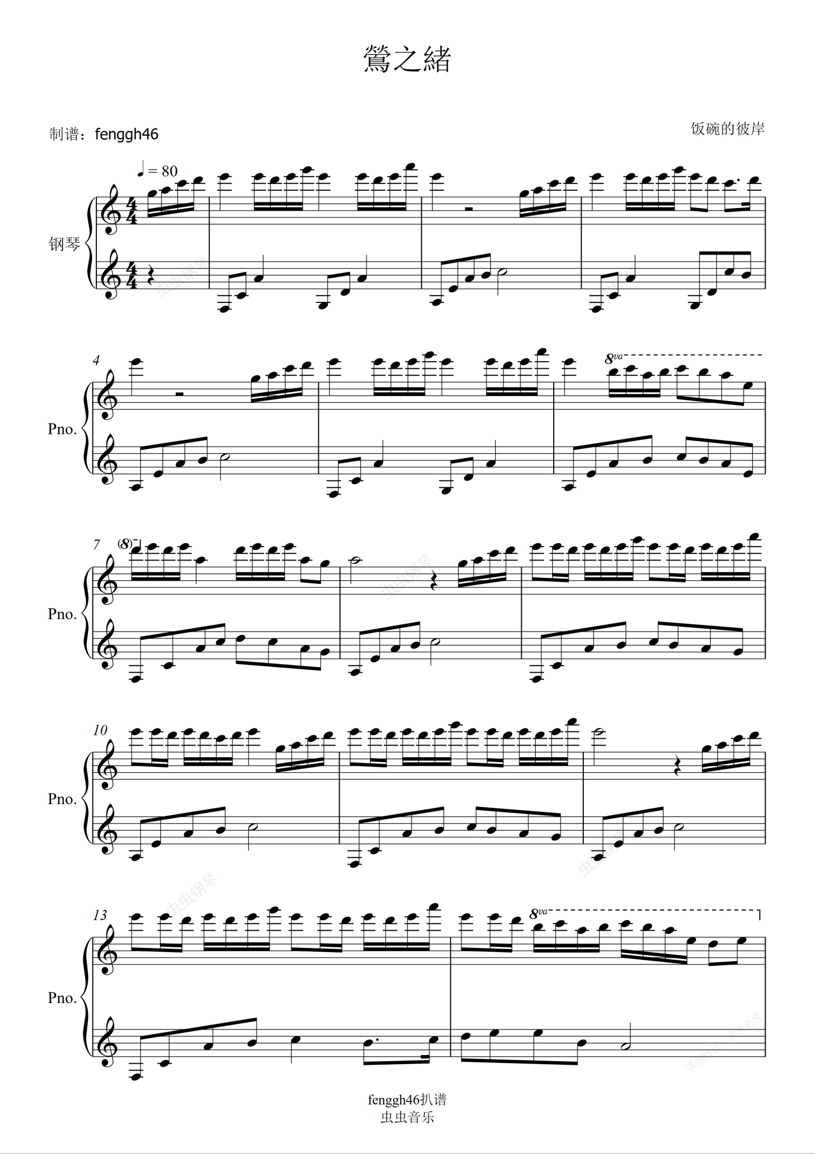飯碗的很好聽的一首曲子! 無償求譜速度會慢一些,不知道會鴿到什么時候x 本譜為本人自扒,禁止商用,未經(jīng)允許禁止轉(zhuǎn)載。