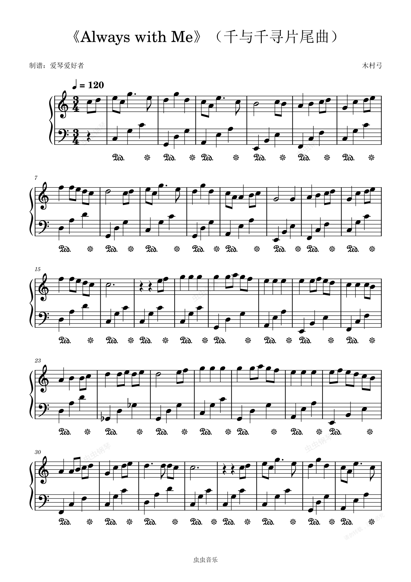 《Always_with_Me》(千與千尋片尾曲)C大調簡易版