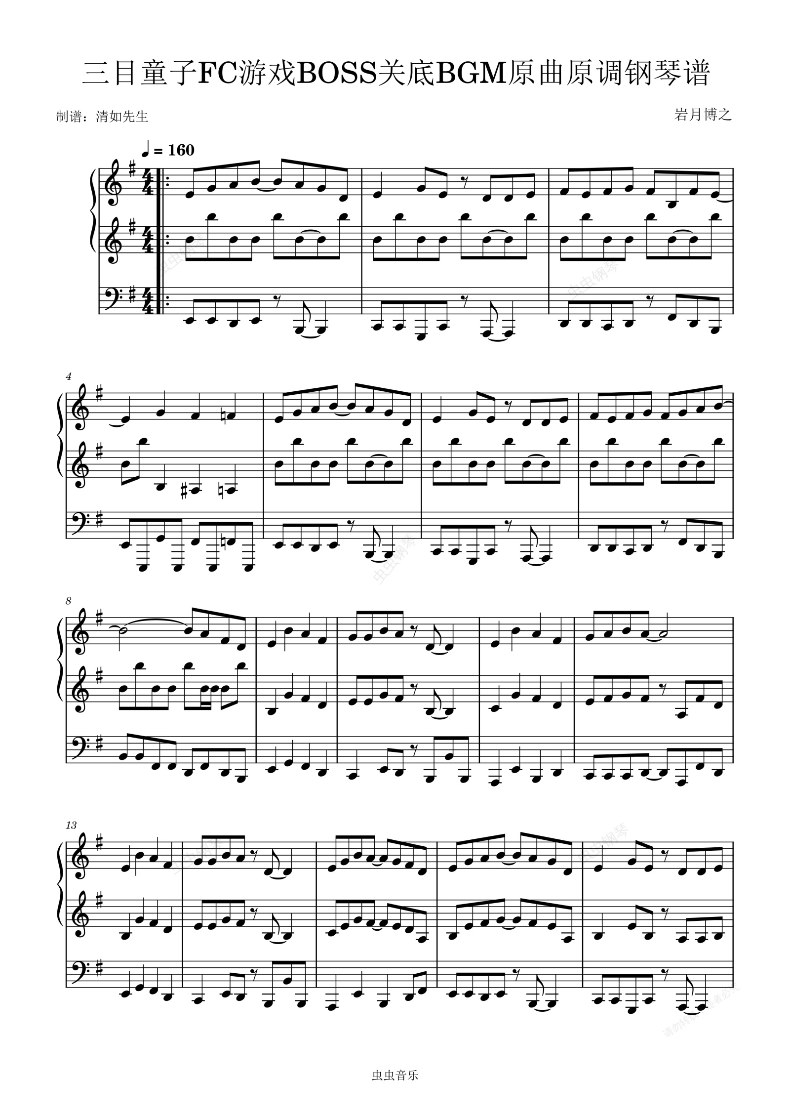 鋼琴譜:三目童子FC游戲BOSS關底BGM原曲原調鋼琴譜
