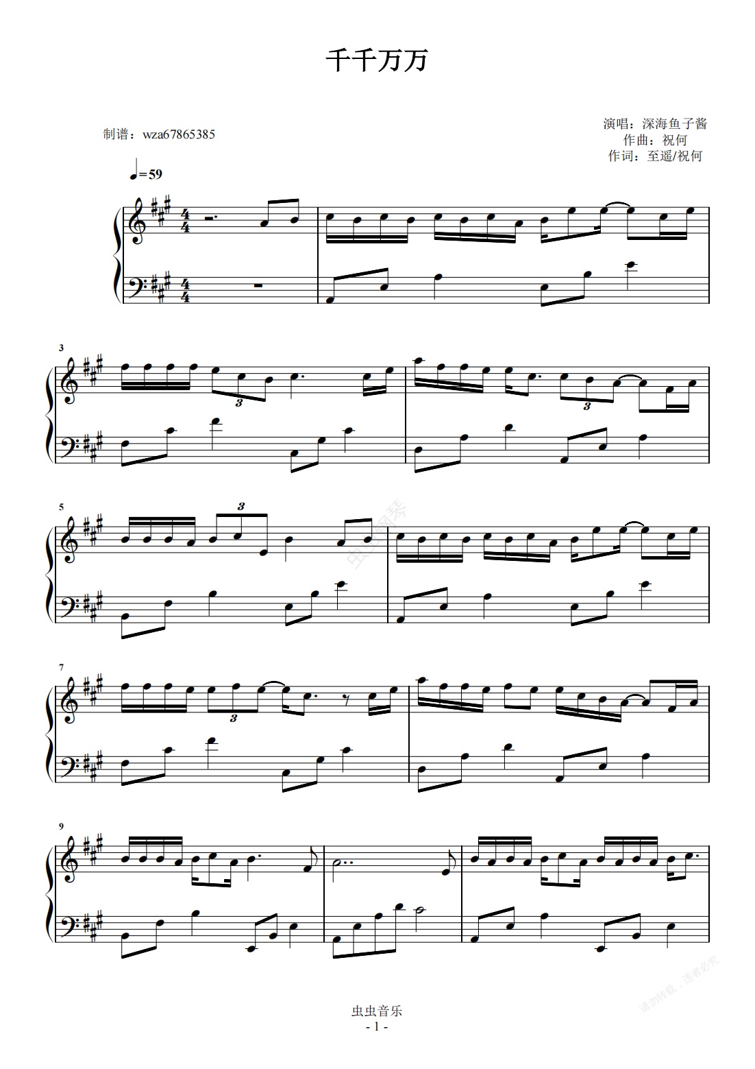 鋼琴譜:千千萬(wàn)萬(wàn)
