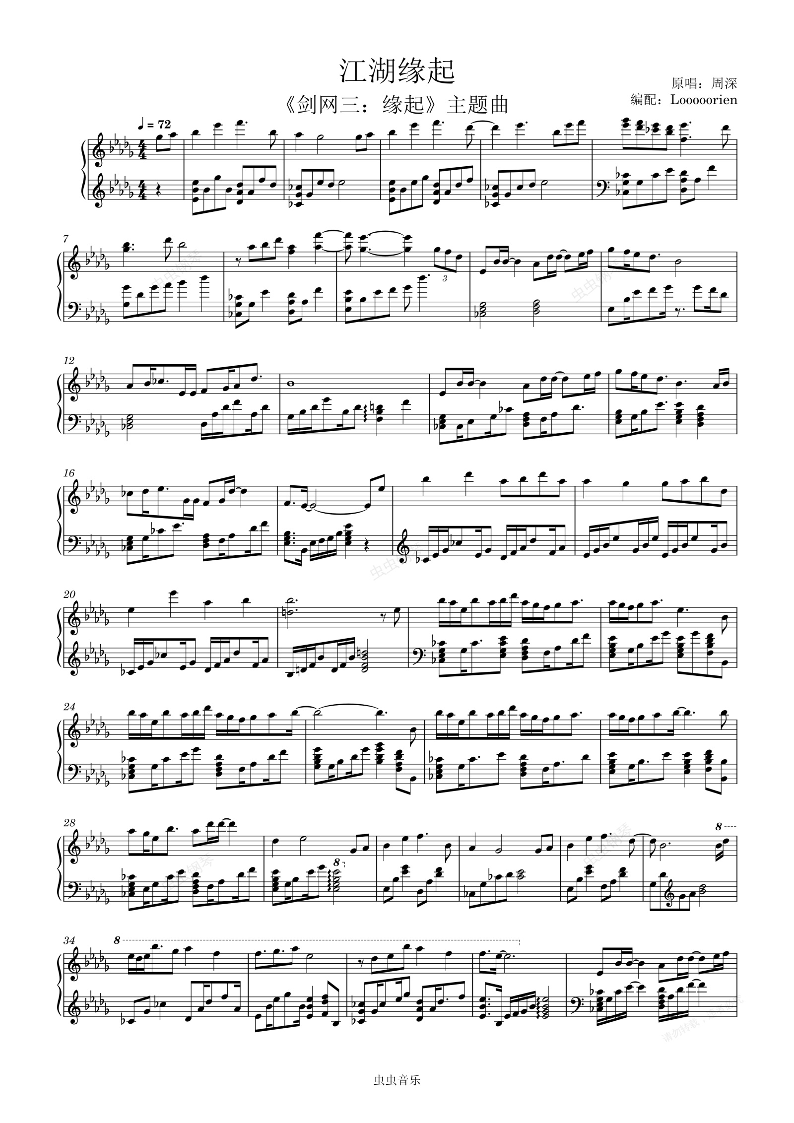 鋼琴譜:周深《江湖緣起》原調鋼琴獨奏