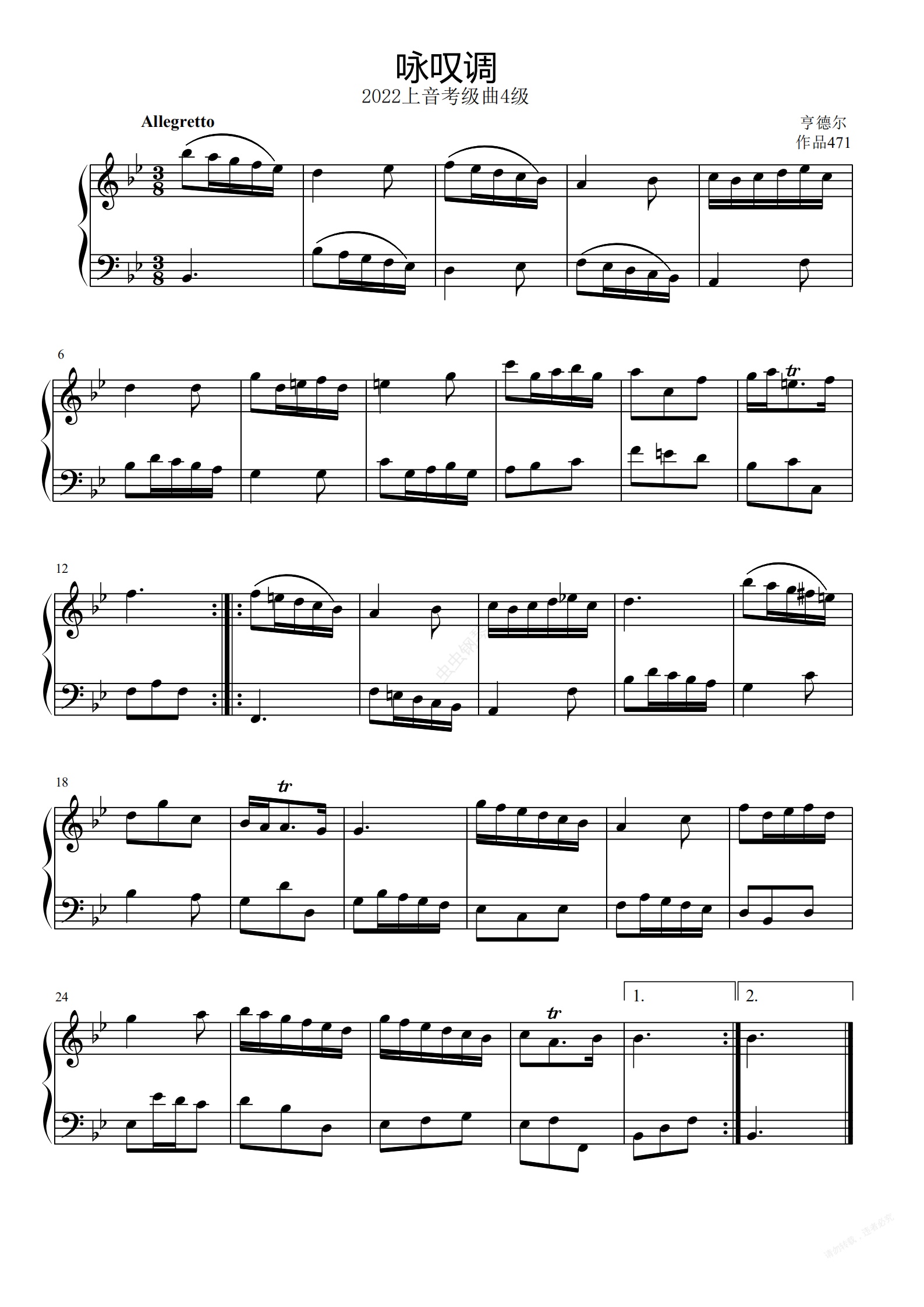 鋼琴譜:4級詠嘆調(上音2022考級曲)