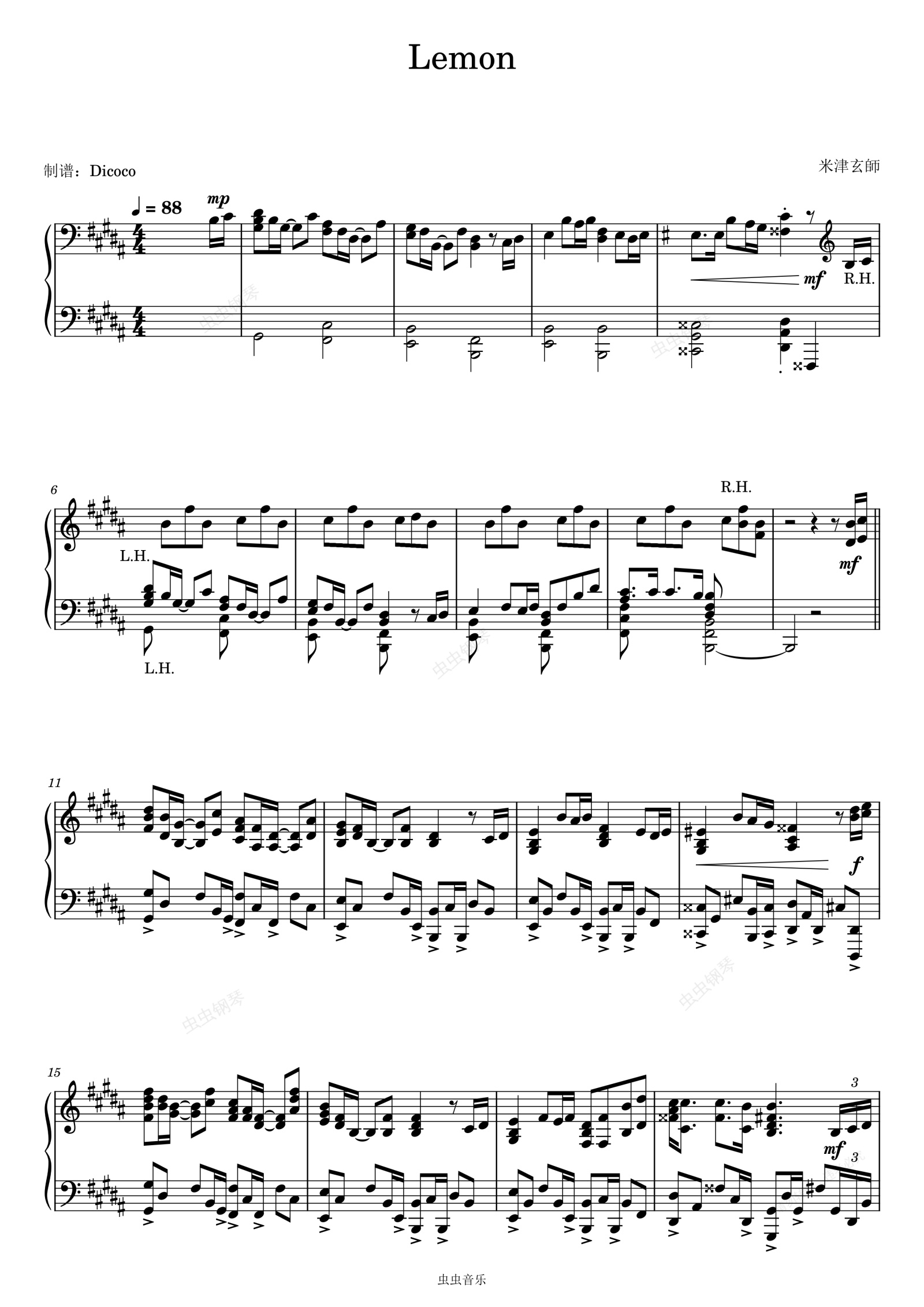 鋼琴譜:Lemon 電視劇《非自然死亡》主題曲 米津玄師 米津玄師