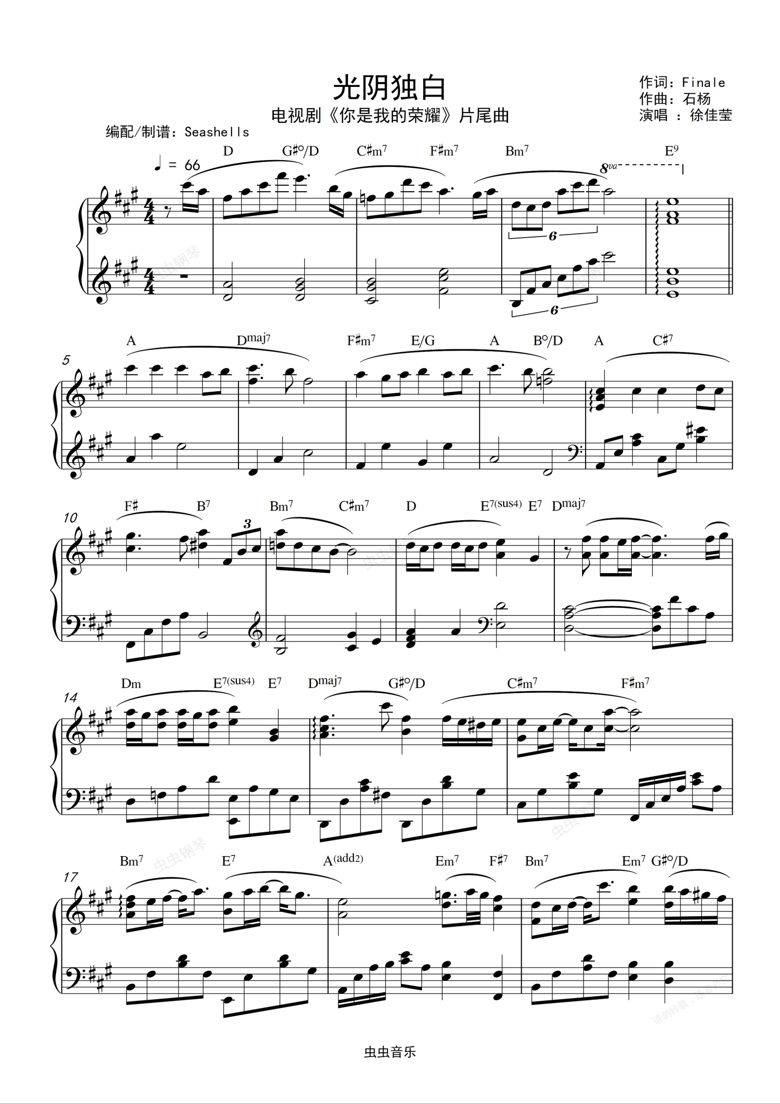 徐佳瑩-《光陰獨白》精編鋼琴獨奏,電視劇《你是我的榮耀》片尾曲。采用原調原和聲,段落優化,帶和弦標記。