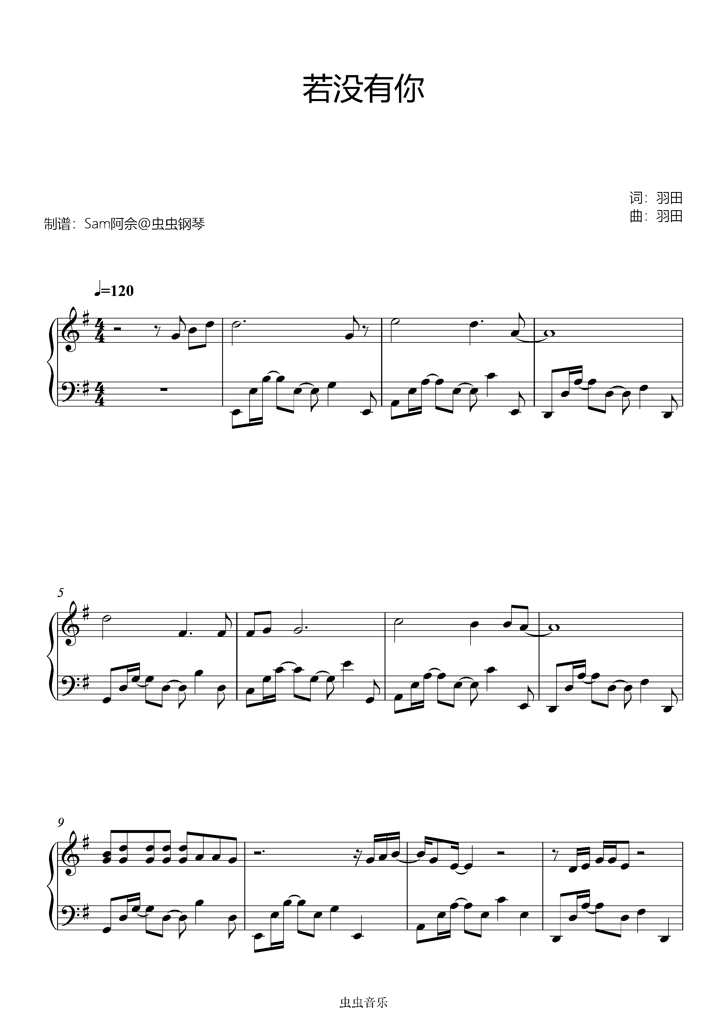 鋼琴譜:原調(diào)《若沒有你》劉宇寧