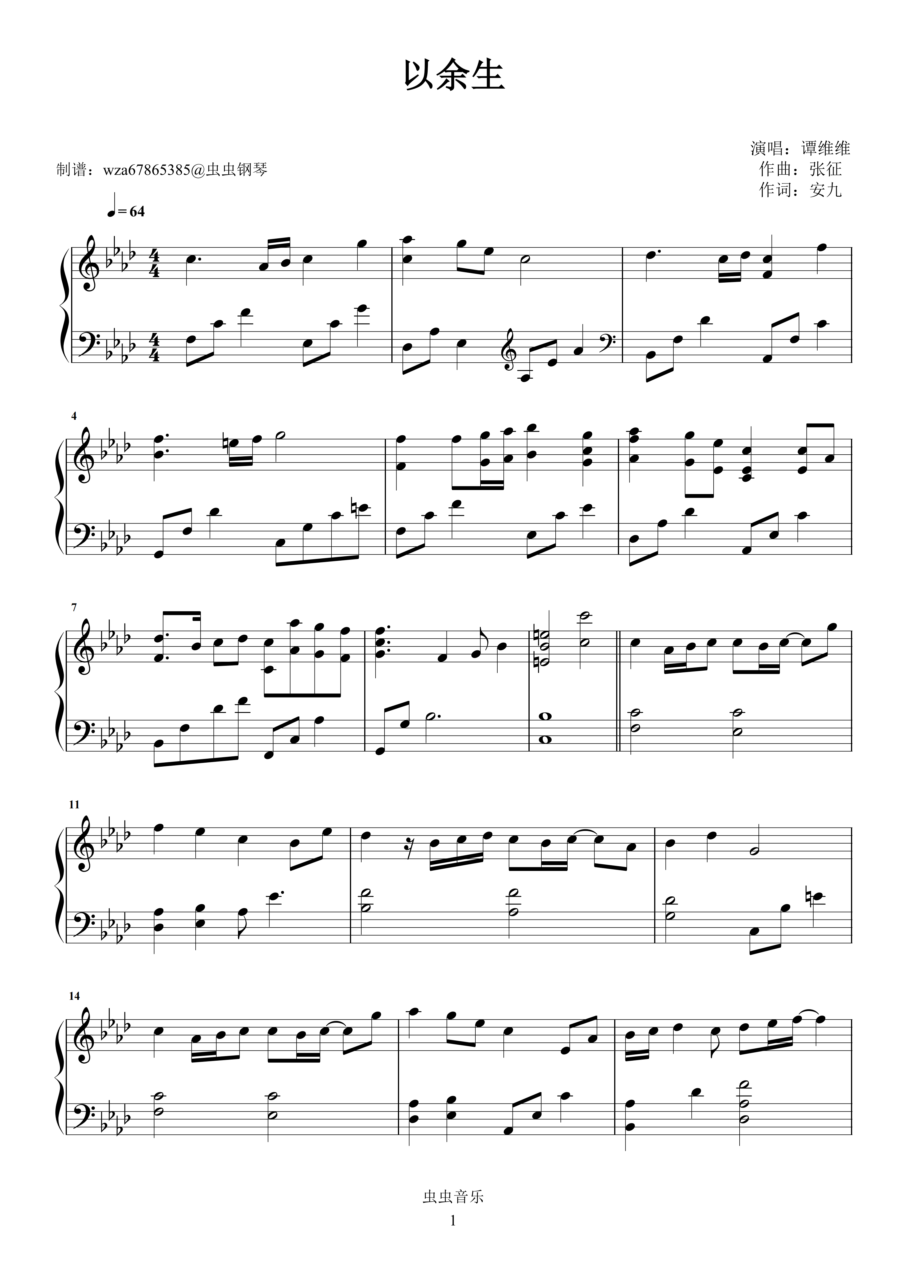 以余生鋼琴簡(jiǎn)譜 數(shù)字雙手