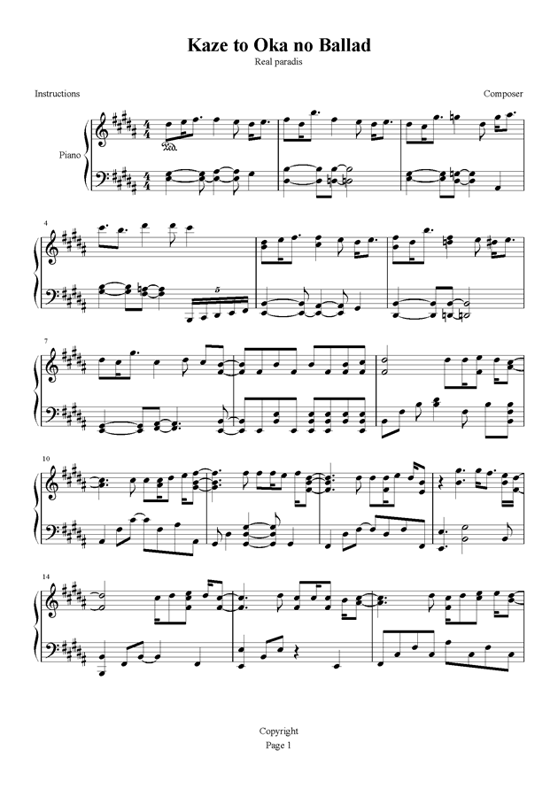 FinaleED 風と丘のバラード鋼琴簡譜 數(shù)字雙手
